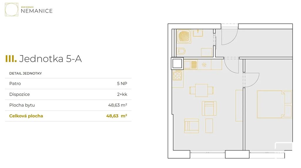 Dispozice bytu je 2+kk a podlahová plocha bytu činí 46m2. Byt se nachází v podkroví domu - střešní okna dodávají bytu nezaměnitelnou atmosféru.