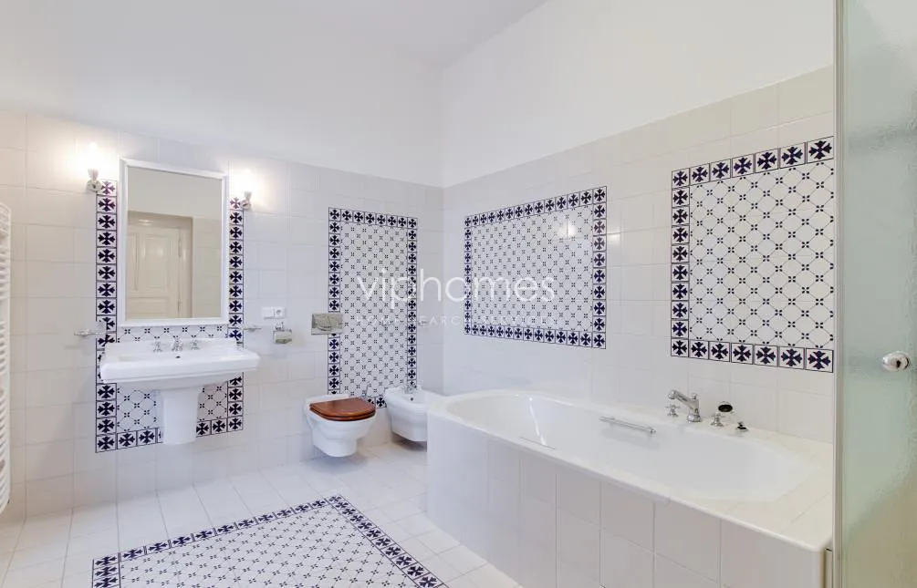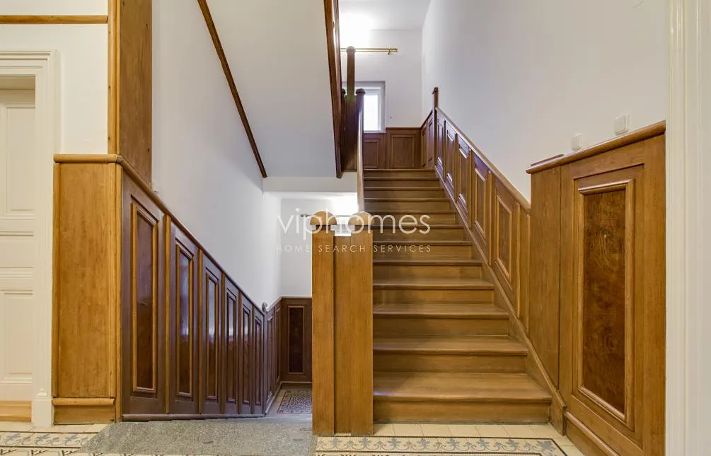 Zachované původní prvky, štuky, vysoké stropy, troje kachlová kamna, parkety, dlažba, dřevěné okenice. Vila je vybavena videotelefonem, alarmem a má satelitní příjem. Poplatky za služby, vodu a vytápění cca 20 000 Kč měsíčně. Elektřina se hradí zvlášť (převod na nájemce). Možnost pronajmout bez nábytku.