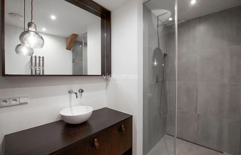Interiér bytu o velikosti 137 m2 tvoří moderně propojený obývací pokoj s kuchyní, 2 prostorově velkorysé ložnice, 2 minimalisticky pojaté koupelny ze sprchou a toaletou, šatna, technické zázemí a vstupní hala.