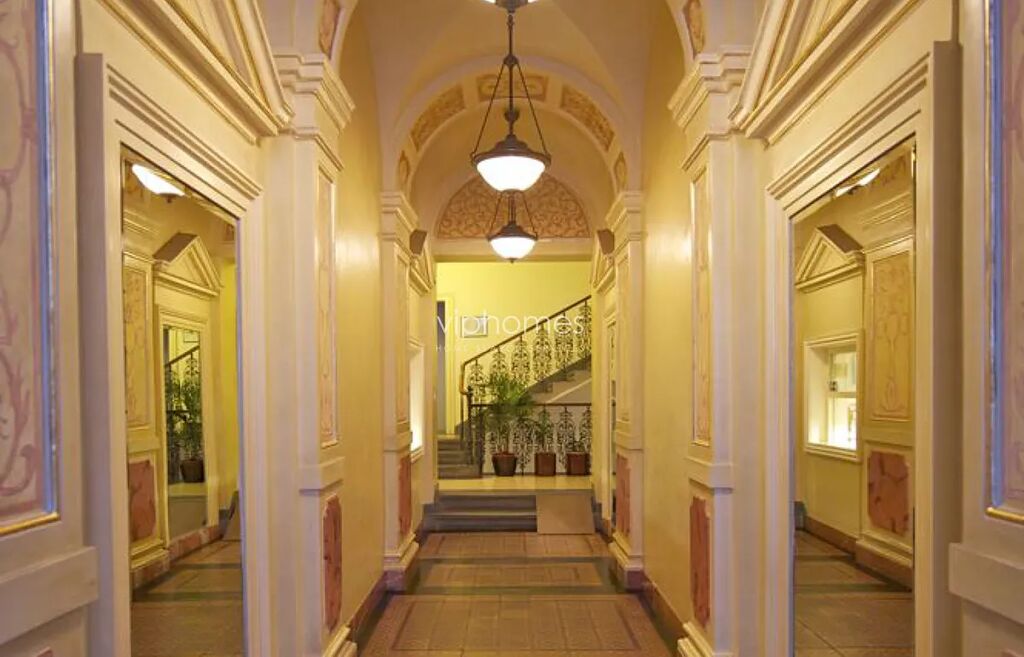 Vybavení : na podlahách parkety, koupelny mramor, žaluzie, pračka, sušička, alarm, videotelefon, klimatizace. Úhrada za společné služby a spotřebu energií činí 20.000 Kč / měsíc. Úklid na vyžádání. Možnost pronájmu garáže přímo v domě za extra poplatek.