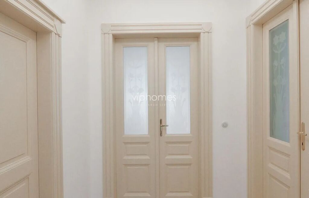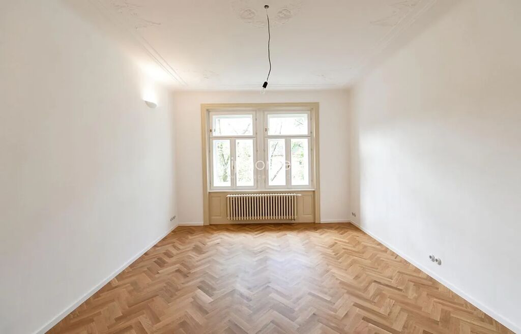 Předmětem nájmu je byt o rozloze 140 m2 zahrnující vstupní halu, prostorný obývací pokoj s jídelnou, plně vybavenou kuchyň s balkonem do vnitrobloku, 2 ložnice s vlastními koupelnami, ( jedna s vanou, bidetem a toaletou, další ze sprchovým koutem a toaletou), dále 2 šatny, technické zázemí a toaletu pro hosty. Interiéry jsou vybaveny značkovými designovými prvky, jako jsou koupelnové obklady a dlažby, sanitární prvky, zařizovací předměty. Nová kuchyňská linka na míru (indukční varná deska, myčka a mikrovlnná trouba), prařka, sušička, úložné prostory, vysoké stropy, štuková výzdoba, renovované dubové parkety, velkoformátová dlažba, bezpečnostní vstupní dveře.