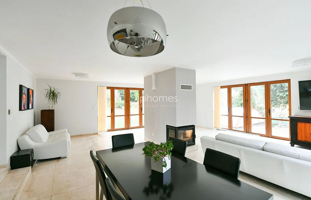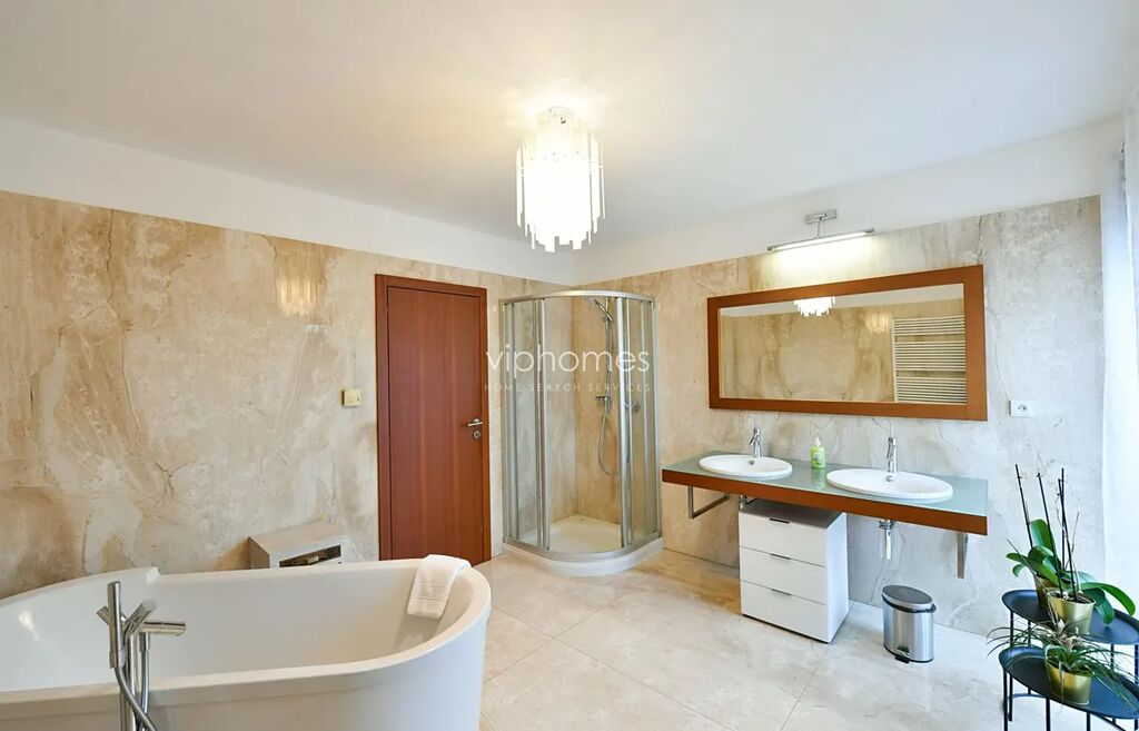 K vybavení patří centrální vysavač, vytápěná podlaha, vestavěné skříně, satelit, internet a zabezpečovací zařízení. Mramorové podlahy, krb v prostoru, vše ve vysokém standardu. Na pozemku kryté parkovací stání pro dvě auta, okrasná zahrada ze vzrostlými stromy, venkovní krytý bazén ze slanou vodou.