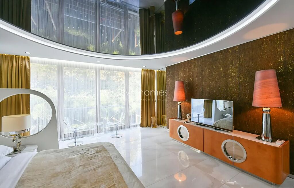 Dispozice: členěný interiér bytu nabízí světlý obývací pokoj s ložnicovou částí s příjemnými výhledy do zeleně. K dalšímu zařízení sedací souprava, komoda, kávovar, konvice, televizor a trezor. V předsíni je vestavná zrcadlová skříň s velkým úložným prostorem, lednicí, žehličkou s žehlícím prknem. V pohádkové koupelně je nainstalovaná perličková vana, WC, bidet a umyvadlo se zrcadlem. Výměra – celkem má byt 53 m2. Celý byt je klimatizován.