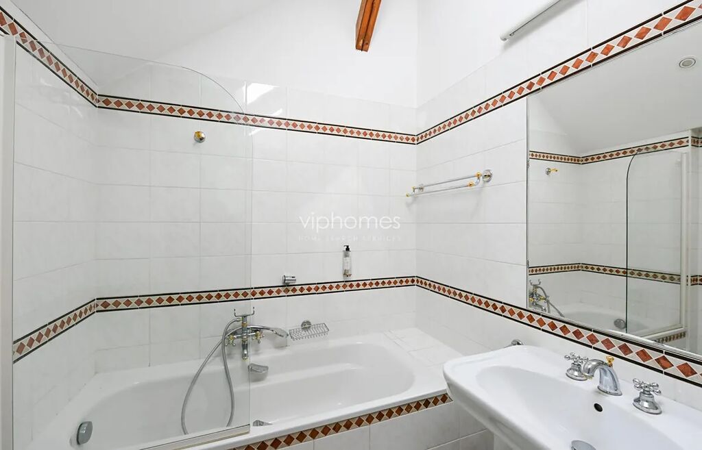 V úrovni vstupu byt nabízí prostorný obývací pokoj s krbem, jídelní prostor navazující na plně vybavenou novou kuchyň, pracovnu, ložnici a koupelnu ze sprchovým koutem a toaletou. Kuchyně je plně vybavena všemi potřebnými spotřebiči : sklokeramická deska, trouba, lednice, mrazák, myčka nádobí a mikrovlnná trouba. V patře je umístěna hlavní ložnice s průchozí šatnou a vlastní koupelnou (vana, toaleta), galerie. Součástí vybavení bytu je pračka se sušičkou.
