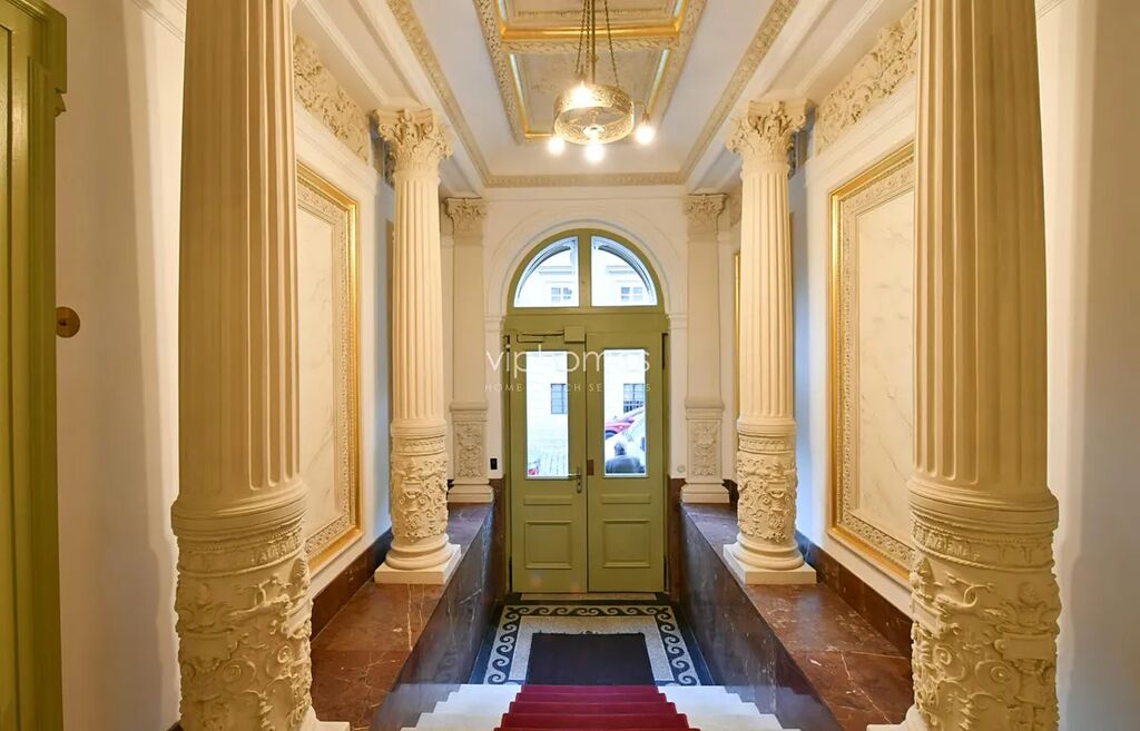 Stylově zařízený byt s balkonem a výhledem na Vltavu a Pražský hrad, ve 4. patře kompletně zrekonstruovaného činžovního domu v samém centru Prahy. Klidná ulice v pěším dosahu nábřeží Vltavy, Národního divadla a Karlova mostu. Prestižní adresa ze spoustou restaurací, kaváren, galerií, divadel v nejbližším okolí. Stanice metra a četných tramvají z rychlým spojením do všech částí metropole. Metro Národní a Staroměstská.