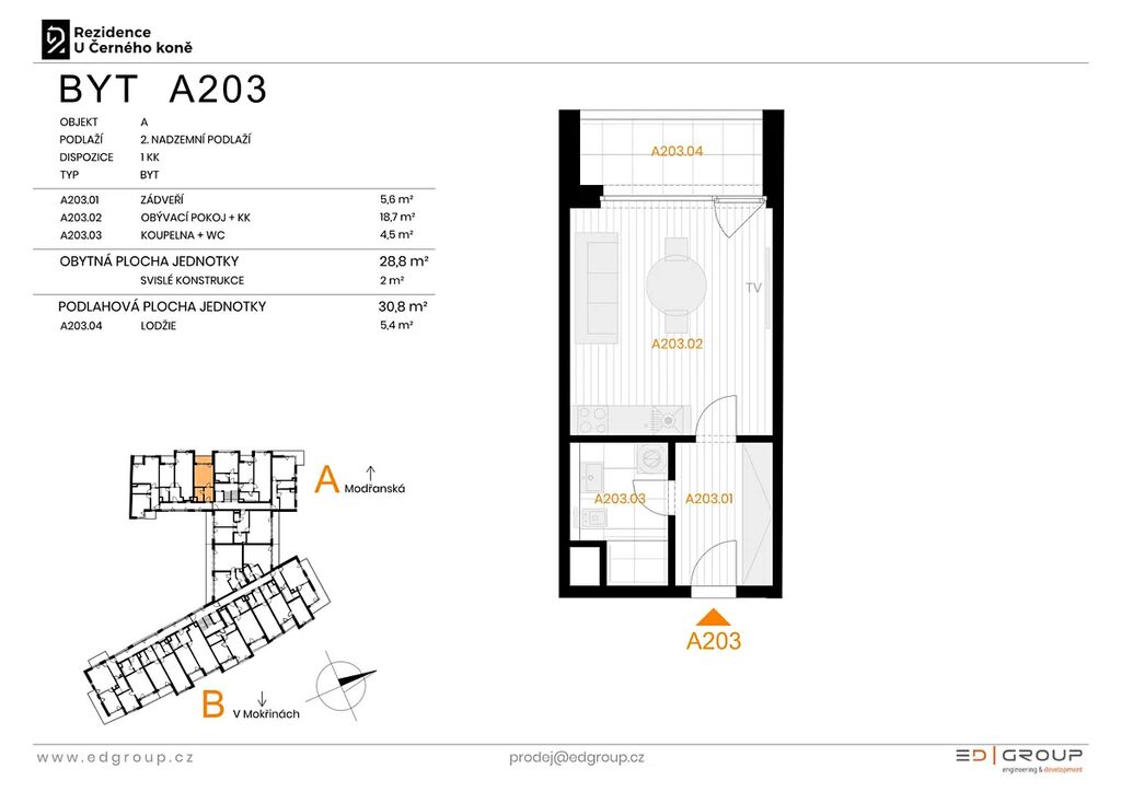 Ke každému bytu náleží sklep, který je zahrnut v ceně jednotky. Garážové stání je možné dokoupit.