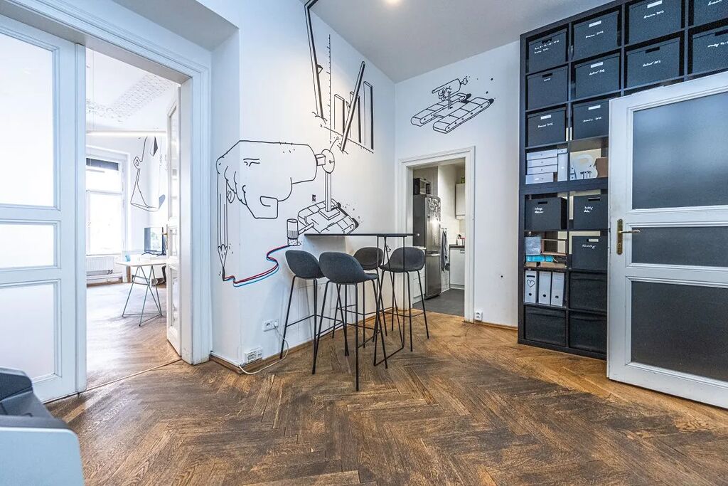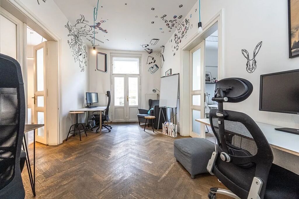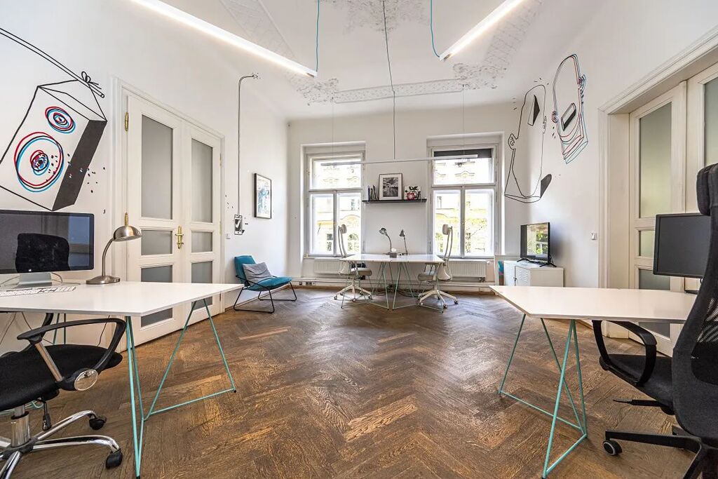 Pronájem originálního kancelářského prostoru 261m2 zabírající celé 2.patro reprezentativního domu v Mánesově ulici, Praha 2. Skládá se ze 7 místností, 2 kuchyněk a 2 toalet. Kancelář je vybavena veškerou kabeláží, na podlahách jsou položeny dřevěné parkety. Budova je 5 minut pěšky od Muzea a náměstí Míru, MHD metro linky A, C, tramvajová zastávka Italská.