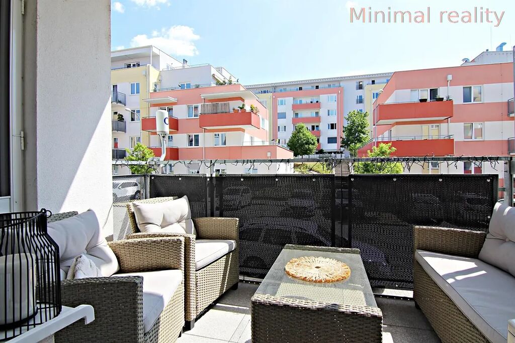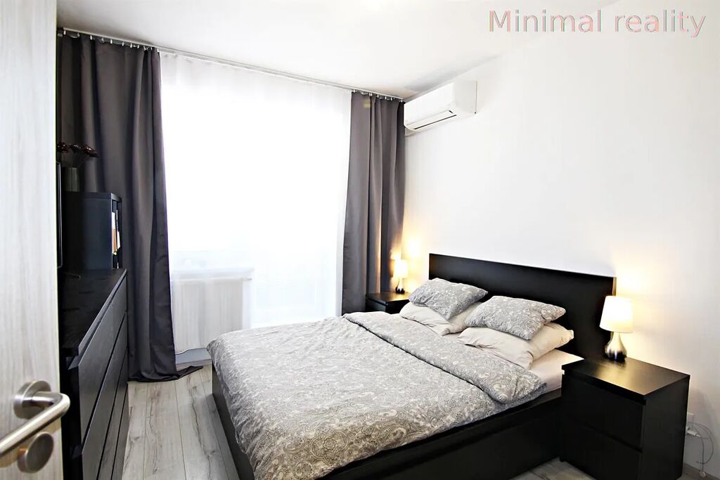 Byt je nabízen plně vybavený. Kuchyňská linka je zařízena vestavěnou lednicí a mrazákem, troubou, sklokeramickou deskou, digestoří, jídelním stolem a židlemi. V místnosti je dále sedací souprava, konferenční stolek a skříňka pod televizi. Na terasu je vstup jak z obývacího pokoje, tak i z ložnice. V ložnici je manželská postel, skříň s šuplíková komoda. Výhodou bytu je samostatná šatna s policovým systémem. Koupelna je zařízena vanou, umyvadlem se zrcadlem, pračkou. Toaleta je samostatná. Náročný nájemce ocení v těchto parných dnech klimatizaci.