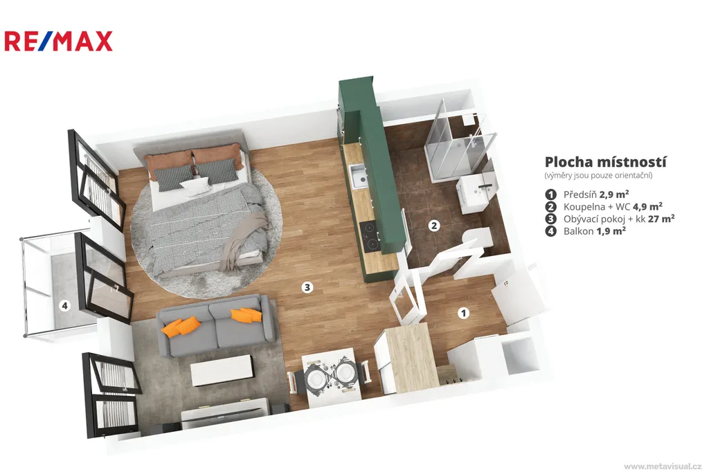 - balkon (1,9 m²)