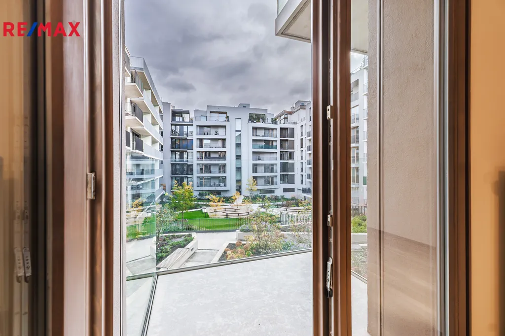 Byt s balkonem je orientovaný do vnitrobloku s výhledem na pestrou zeleň a nabízí tak klidnou scenérii v kontrastu s dynamickým tempem města.
