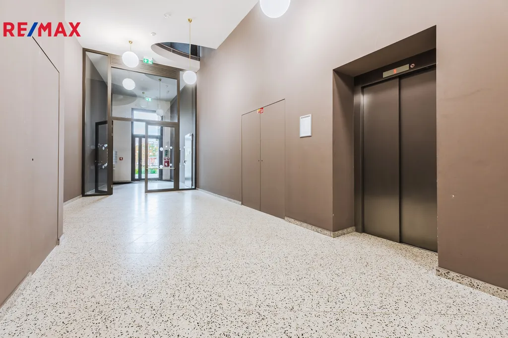Bytový dům disponuje výtahem a nabízí tedy bezbariérový vstup do bytu. K bytové jednotce náleží prostorná sklepní kóje, která je přístupná z podzemních garáží.