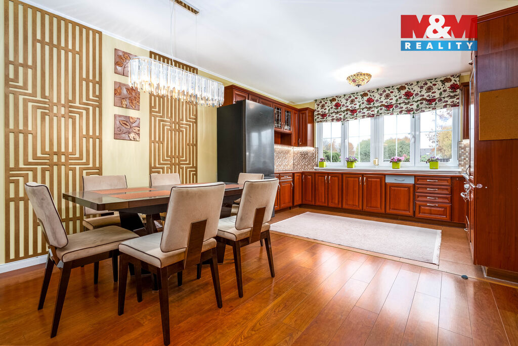 V přízemí domu se nachází prostorná vstupní chodba, světlý obývací pokoj propojený s moderní kuchyní a jídelní částí. Odtud je přímý vstup na terasu a na krásně udržovanou zahradu, ideální pro odpočinek i rodinná setkání. Součástí domu je také garáž s vraty na elektrický pohon.
