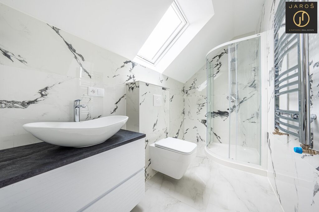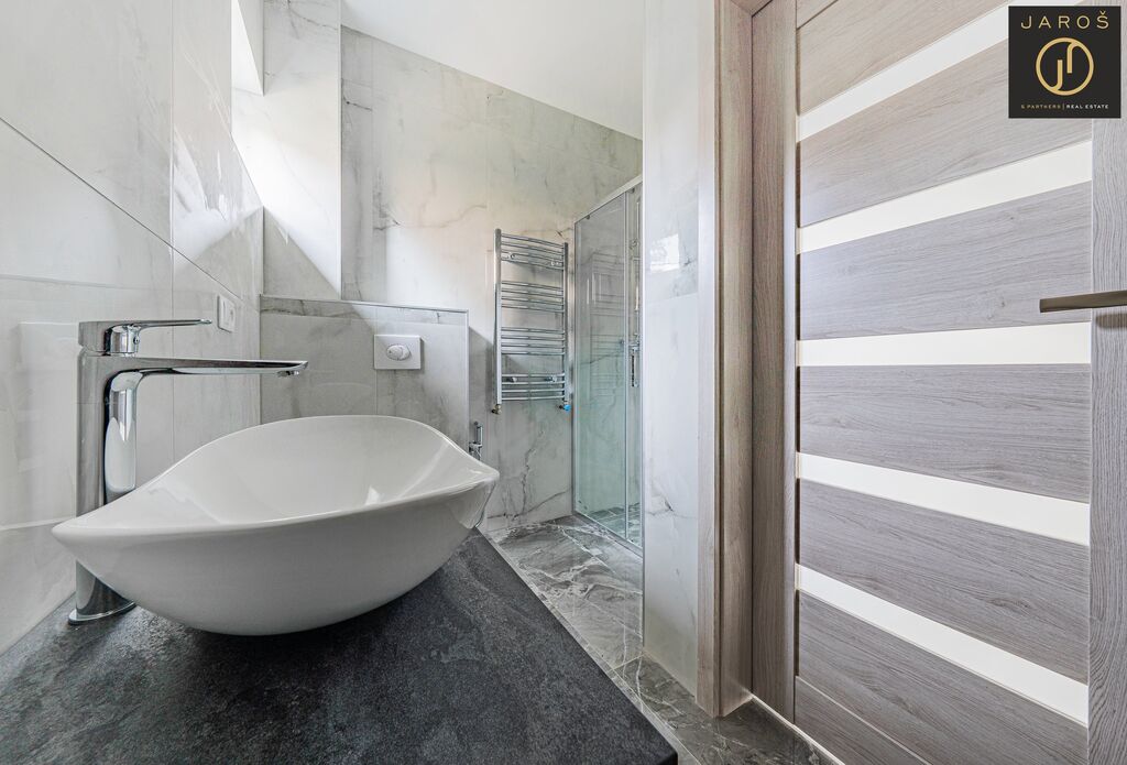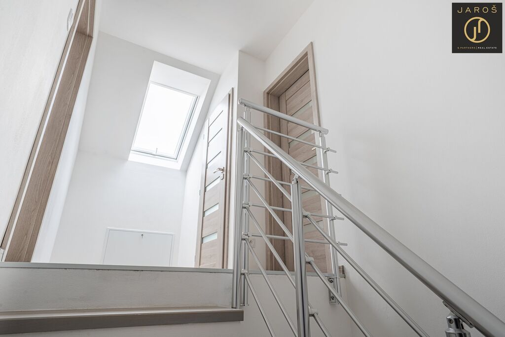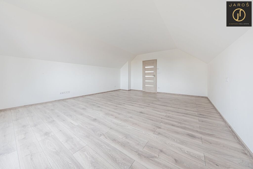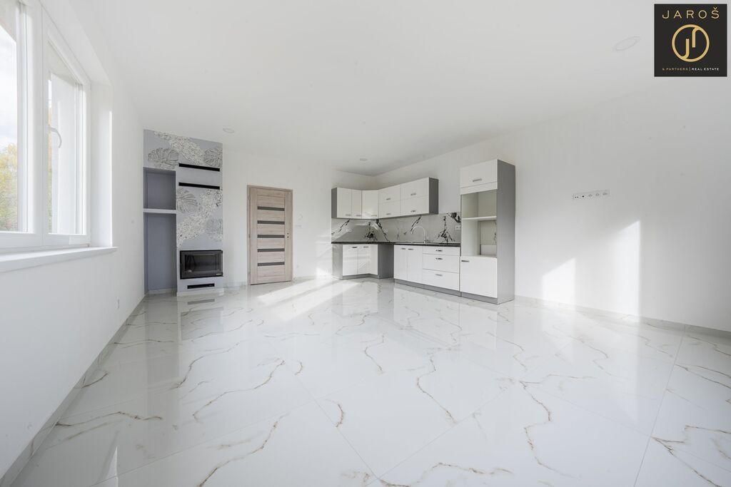 Nabízíme k prodeji novostavbu patrového rodinného domu o dispozici 4+kk a podlahové ploše 140 m², která se nachází přímo na návsi malebné obce Jedomělice v okrese Kladno. Dům má zastavěnou plochu 85 m² a stojí na pozemku o velikosti 243 m². Aktuálně probíhají dokončovací práce zahrnující připojení inženýrských sítí, osazení jímky a instalaci tepelného čerpadla. Vnitřní část domu je již kompletně dokončená, včetně osazené moderní kuchyňské linky a krbu, který tvoří dominantní prvek obývacího prostoru.