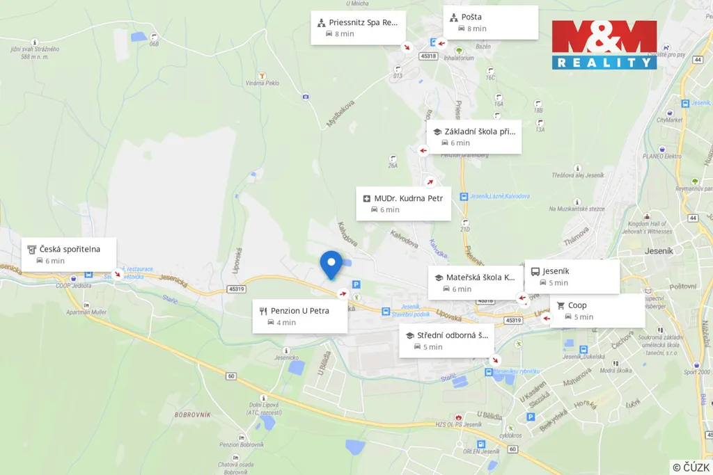 Nabízíme k prodeji pozemek o celkové výměře 988 m² v Jeseníku. Mírně svažitý pozemek s výhledem na okolní horskou krajinu má pravidelný tvar. Parcela je dle územního plánu určena k individuálnímu bydlení a představuje tak vhodné místo pro výstavbu rodinného domu nebo zajímavou investiční příležitost. Pozemek má obecní asfaltovou příjezdovou komunikaci. Inženýrské sítě – elektřina, vodovod a kanalizace – jsou přivedeny na jeho hranici, což výrazně usnadní budoucí výstavbu. Doporučujeme osobní prohlídku.