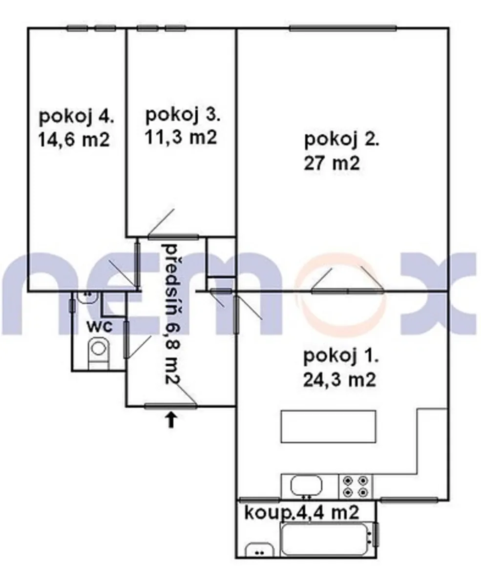 Původní kastlová okna v dobrém stavu jsou orientována na východ a západ. V bytě jsou vysoké stropy (3,6 m) a velmi pěkné zachované původní dvoukřídlé dveře. Ve třech pokojích jsou původní parkety. V obývacím pokoji s kuchyňským koutem je plovoucí podlaha. Kuchyňský kout je vybaven zachovalou kuchyňskou linkou s plynovým vařičem, elektrickou troubou, vestavěnou mikrovlnou troubou, myčkou a lednicí s mrazákem. Koupelna s toaletou jsou odděleně. Topení a ohřev teplé vody zajišťuje kombinovaný kotel. K bytu patří zděný sklep cca 5 m2. Také pro společné využití jednoho domu je terasa 100 m2. O dům se výborně stará společenství vlastníků jednoho domu: fasáda, střecha, nový výtah, vstupní dveře, zvonky, společné prostory, společná elektřina. V případě zájmu o tuto nemovitost Vám rádi pomůžeme s vyřízením hypotéky zdarma. Byt je pro Vás volný ihned.