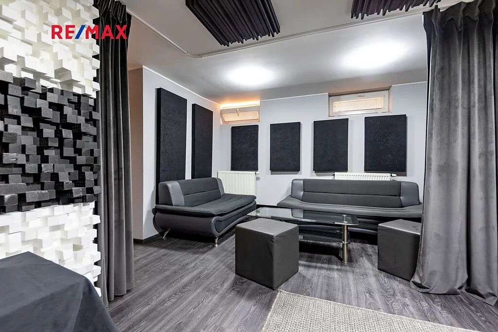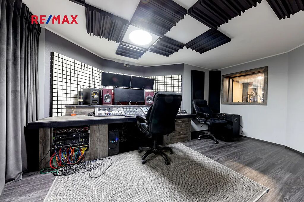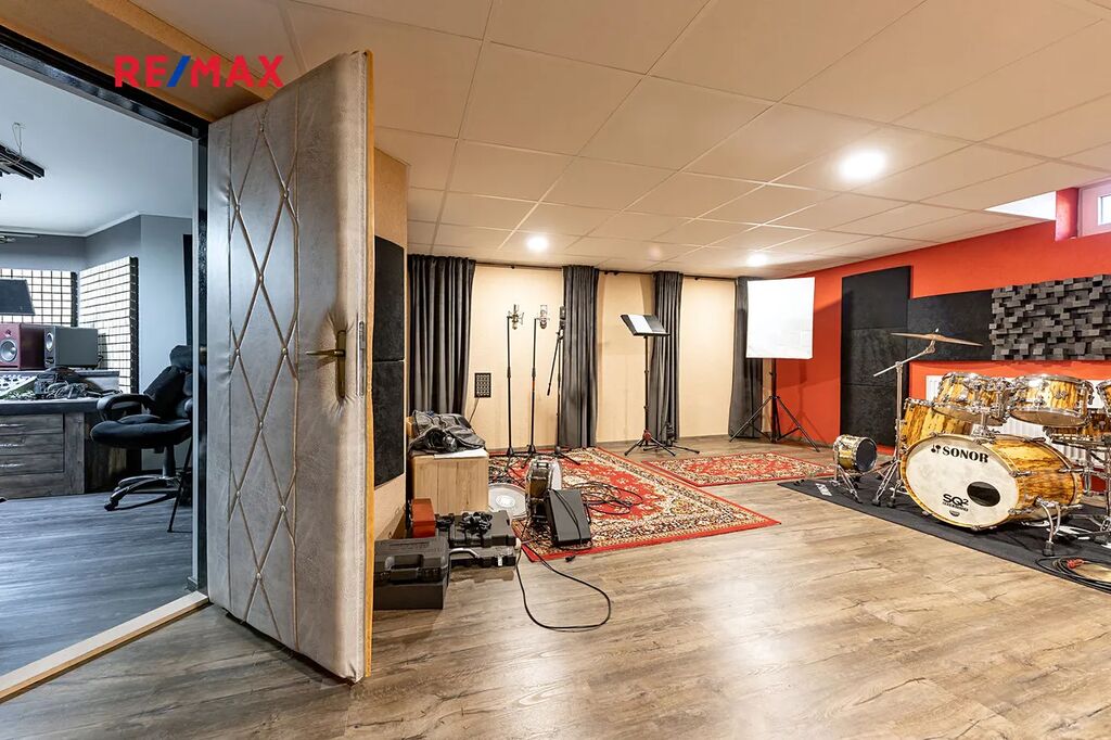 Suterén domu: Nahrávací studio (cca 39m²), obývací prostor (cca 42m²), prádelna (cca 26m²), toaleta (cca 3,5m²), chodba (cca 12m²), kotelna (cca 36m²). Suterén domu disponuje samostatným vstupem.