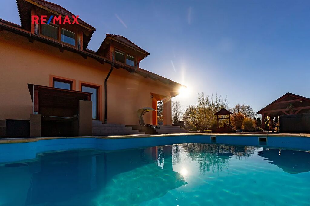 Nabízíme Vám k prodeji rodinný dům s venkovním bazénem a garáží s kapacitou 2 vozů v obci Chlumčany. Zastavěná plocha je 303m². Nemovitost disponuje třemi bytovými jednotkami 5+1, 3+1, 2+1(cca 636m²). Celková výměra pozemku je 2148m², zahrada 1845m².