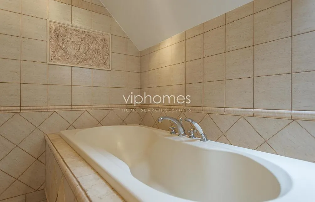 Vestavěné skříně, alarm, satelit, internet, myčka, terasa a zahrada skýtající naprosté soukromí. Garáž pro dva vozy plus parkovací stání na pozemku. Poplatky cca 10.000 Kč měsíčně.