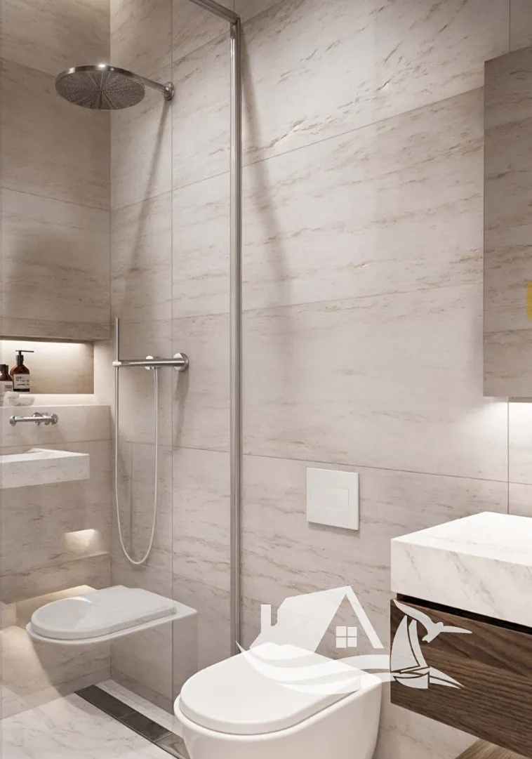 Byt disponuje třemi prostornými ložnicemi, dvěma koupelnami, světlým obývacím pokojem s kuchyňským koutem a přímým vstupem na krytou verandu o rozloze 20,8 m², která rozšiřuje obytný prostor a poskytuje ideální místo pro relaxaci, stolování či večerní posezení s výhledem na moře. Celková obytná plocha činí 100,75 m², což zajišťuje dostatek prostoru pro komfortní bydlení.