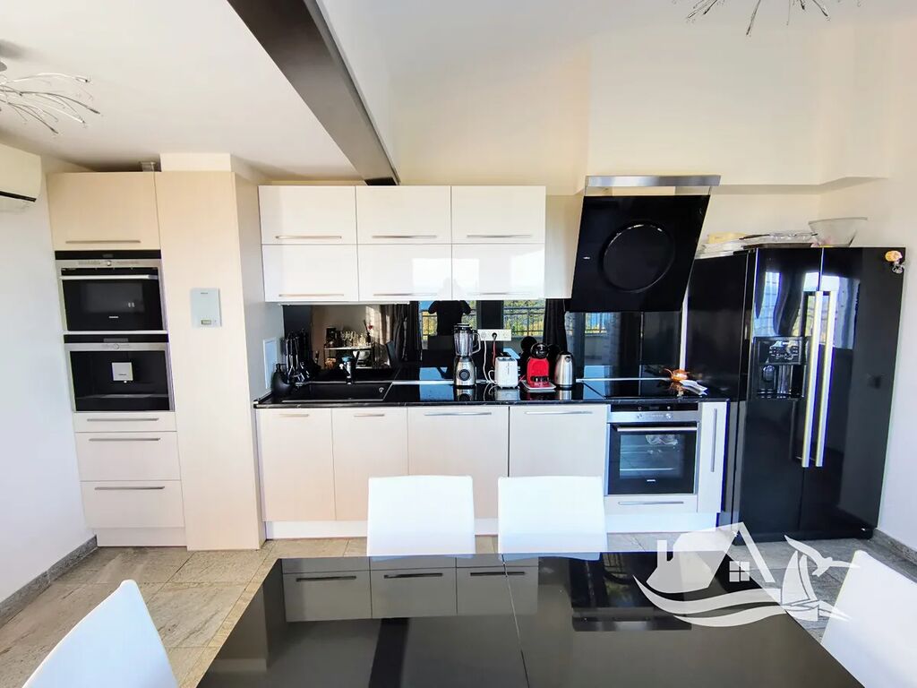 Dispozice bytu nabízí pohodlí a prostor: vstupní hala, velký obývací pokoj s kuchyňskou a jídelní částí, dvě samostatné ložnice, dvě koupelny s WC a impozantní terasa o výměře 61 m², která je přístupná ze všech místností. Z terasy se otevírá panoramatický výhled na moře, bazén a zelené vnitrobloky komplexu.