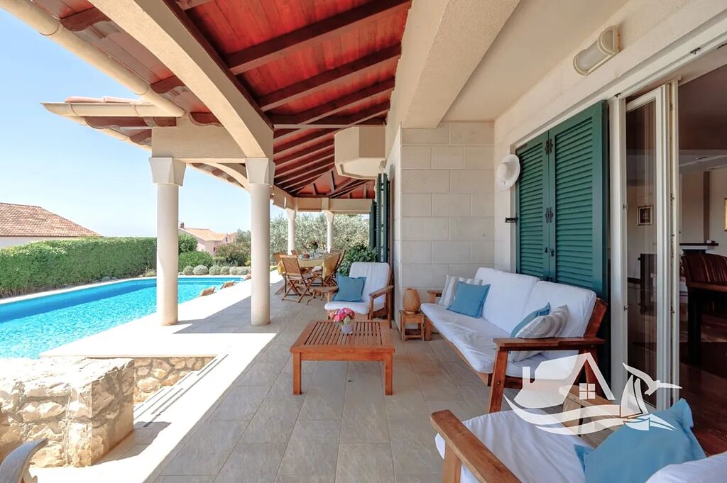 Na prodej je výjimečný třípodlažní dům s bazénem v oblíbené přímořské obci Kožino, pouhých 170 metrů od moře a 600 metrů od centra. Tento elegantní dům o celkové ploše 810 m² se nachází na pozemku o rozloze 1 451 m² a nabízí vše, co si lze od středomořského bydlení přát – prostor, soukromí, moderní komfort a nádherný výhled na moře.
