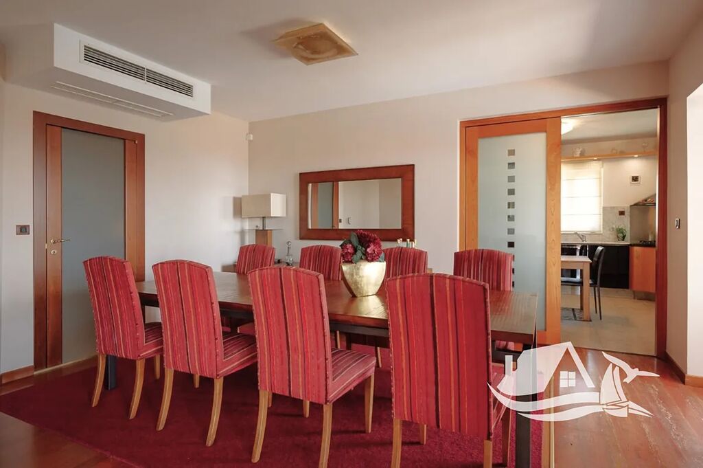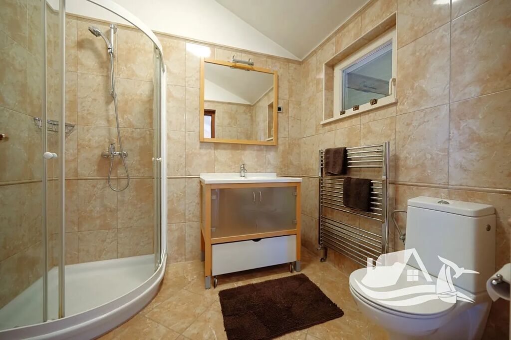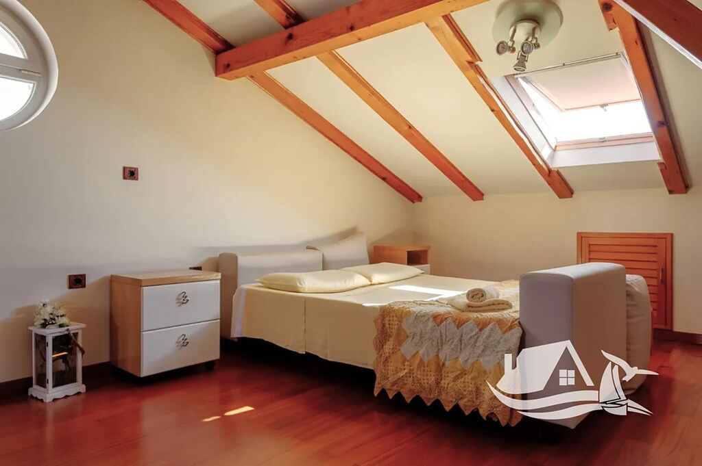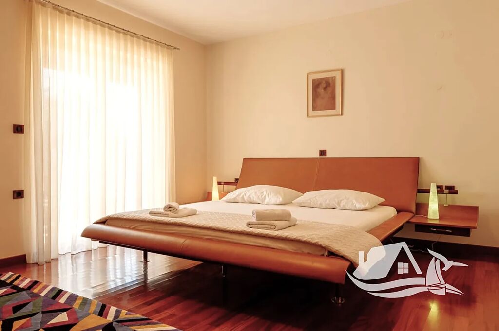 Dům se skládá ze suterénu, přízemí a podkroví. V prostorném suterénu o ploše 270,95 m² se nachází garáž pro tři automobily, fitness místnost, koupelna, tři skladové prostory a kotelna. Přízemí o rozloze 348,92 m² nabízí reprezentativní vstupní halu, čtyři ložnice (dvě s vlastní koupelnou), další koupelnu, prostorný obývací pokoj s jídelnou a kuchyní, samostatné WC, komoru a zastřešenou terasu ideální pro rodinné večeře či letní relaxaci. Z přízemí vede vnitřní schodiště do podkroví (190,21 m²), kde se nachází dvě další ložnice, koupelna, komora, herna a velká místnost, kterou lze využít jako druhý obývací pokoj nebo samostatnou kuchyni. Otevřená terasa a lodžie poskytují jedinečný výhled na moře a okolní krajinu.