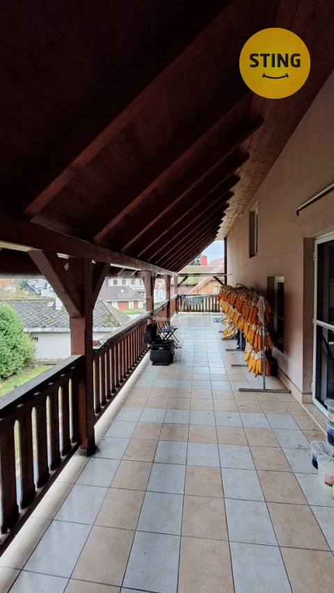 Další dvě podlaží s užitnou plochou 104 m2 jsou určená k bydlení. Z prvního podlaží o dispozici 3+1 je vstup na rozlehlou terasu o rozloze 32 m2, která je jistou dominantou tohoto domu a je z ní velmi pěkný výhled do okolní krajiny.