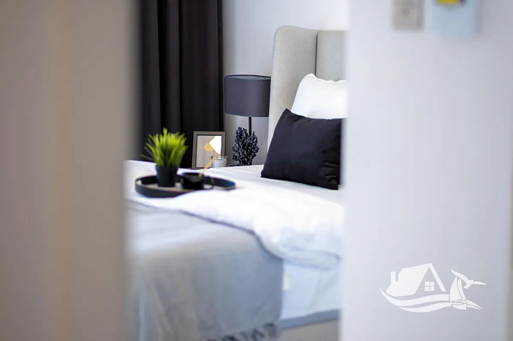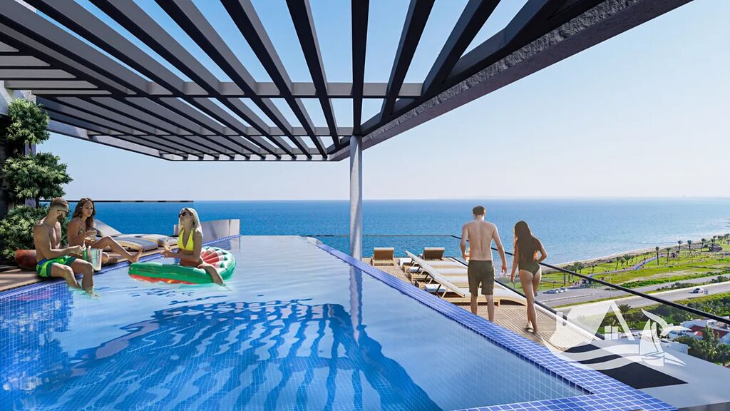 Moderní apartmán 2+kk s balkonem a krásným výhledem na moře a bazén. Nachází se jen pár kroků od pláže, nabízí soukromou pláž, venkovní bazén, fitness, sky bar a barbecue zónu.