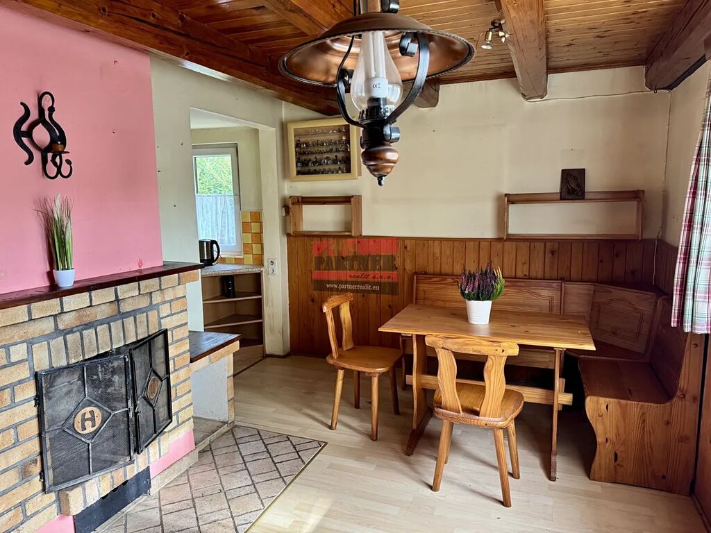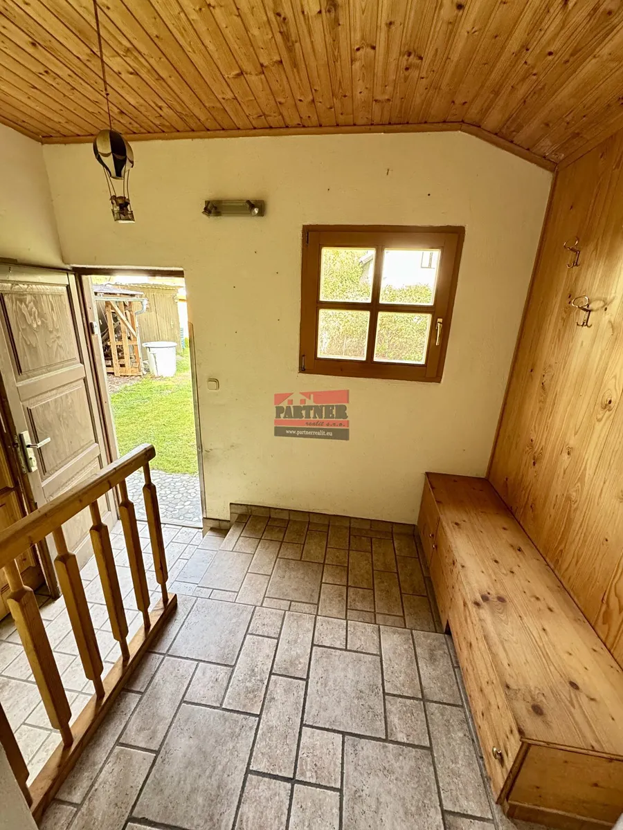 Zděný a zateplený dům nabízí v přízemí garáž, zádveří, komoru, chodbu, obývací pokoj s krbem a krbovými kamny, kuchyni a koupelnu se sprchovým koutem a toaletou. V podkroví se nachází dva samostatné pokoje. Součástí ceny je kompletní vybavení dle fotografií.