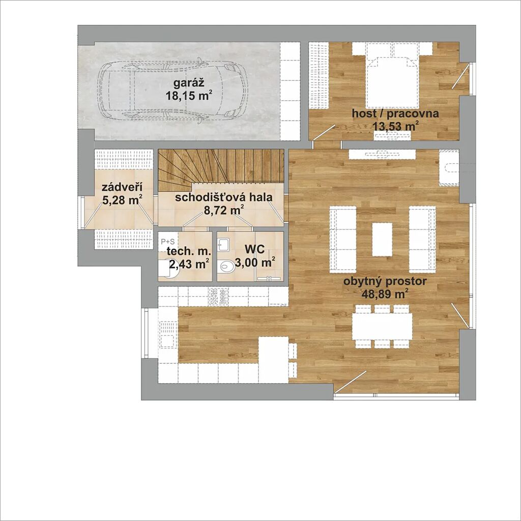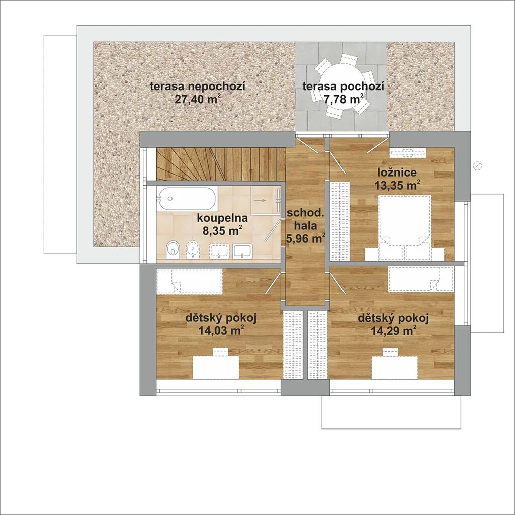 - podlahové topení Rehau v obou patrech