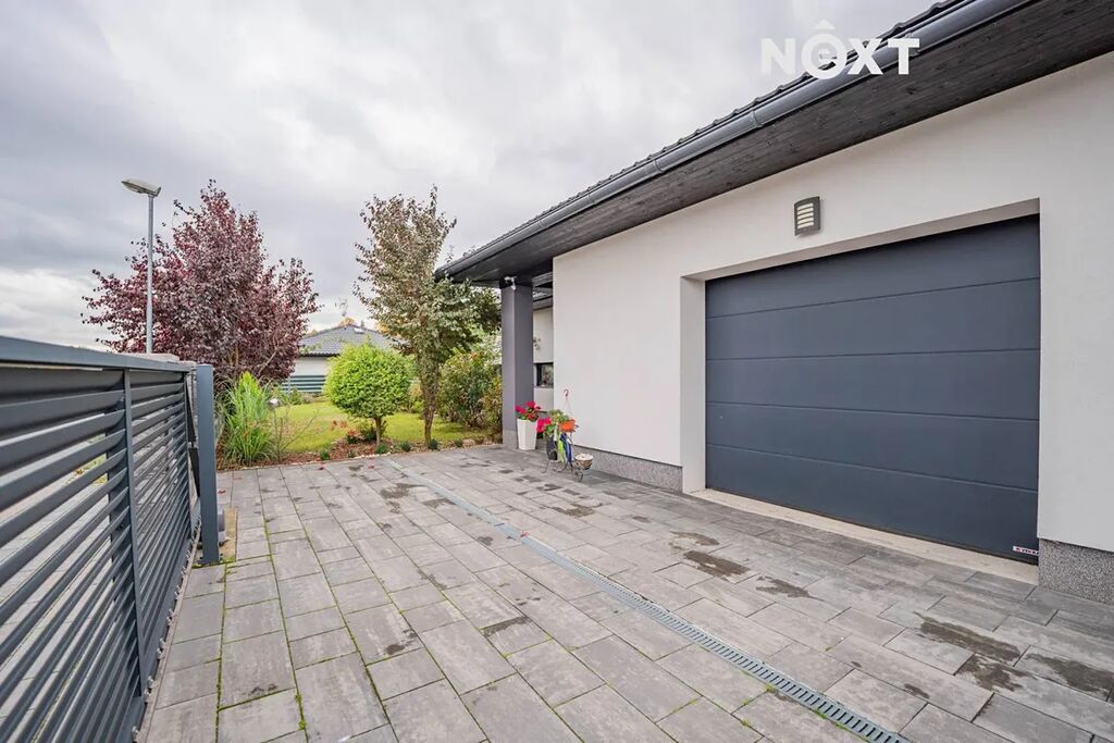 Dům nabízí dispoziční řešení 4+kk s prostorným obývacím pokojem, který díky netradičně vysokým stropům (3,2 m) působí mimořádně vzdušně a velkoryse. Na něj navazuje moderní kuchyně s jídelní částí, odkud je přímý vstup na terasu o velikosti 26 m² a zahradu s jihozápadní orientací. Kuchyňská linka je vyrobena na míru, vybavena vestavěnými spotřebiči a navržena tak, aby poskytovala maximum pracovního i úložného prostoru. Součástí domu je místnost pro šatnu, samostatná toaleta pro hosty, technická místnost s pračkou, sušičkou a bojlerem. Koupelna s vanou i sprchovým koutem a další toaletou, tři neprůchozí pokoje a garáž o ploše 25 m² s automatickými vraty.
