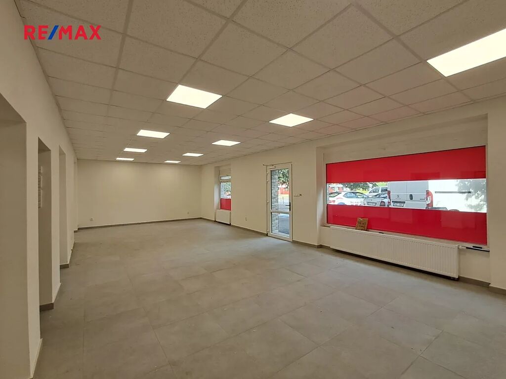 Obchodní prostory se sociálním zázemím se nachází v 1.NP domu s plochou cca 90 m² (70m² prodejní plocha, 20m² sociální zázemí).