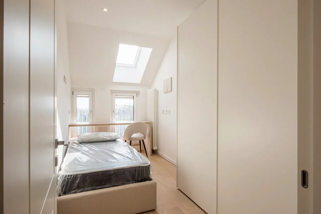 Nabízíme k prodeji exkluzivní podkrovní byt 3+kk v žádané lokalitě Milána, v rezidenční čtvrti. Tento prostorný byt se nachází v klidné části obce v sedmém patře smíšené budovy, která byla původně postavena v roce 1965 a kompletně zrekonstruována v roce 2015. S užitnou plochou 90 m² a velkou střešní terasou s panoramatickým výhledem na město nabízí ideální prostor pro bydlení náročnějších klientů.