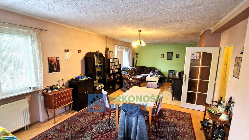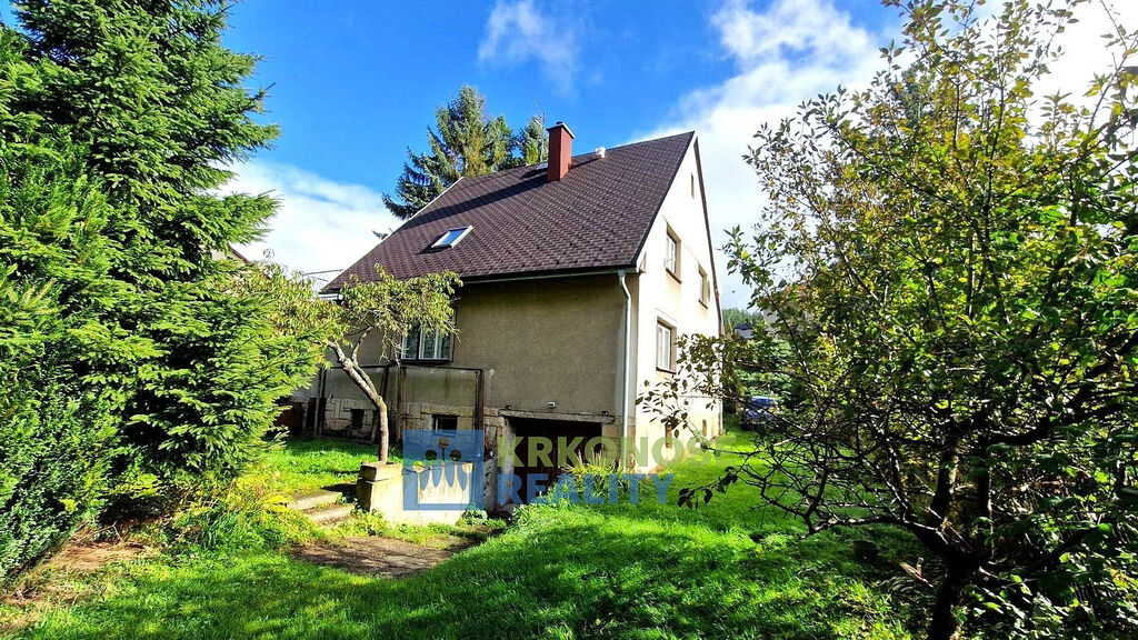 Nabízíme Prodej rodinného domu se zahradou, garáží a pergolou, v okrajové části obce Úpice, ulice Palackého. Objekt je zděný, s kamennou podezdívkou a břízolitovou fasádou. Ve větší části své zastavěné plochy je dům podsklepen. Dům je vytápěn plynovým kotlem ústředního topení. Je napojen na veřejný kanalizační a vodovodní řád + vlastní studna. Elektřina – 220/380V. Dispozice – v prvním podzemním podlaží domu se nachází bytová jednotka o velikosti 2+kk - chodba, koupelna (vana, sprchový kout, umývadlo), WC, obývací pokoj s kuchyňským koutem, ložnice, schodiště do druhého nadzemního podlaží, kde je bytová jednotka 3+1 – chodba s výstupem na venkovní nezastřešenou terasu, 2 pokoje, kuchyň, koupelna (rohová vana, umývadlo) s WC, komora. V 1. podzemním podlaží je chodba, prádelna, kotelna, sklep, spíž a garáž. K objektu dále přísluší samostatně stojící dřevěná pergola, jež však není se zemí pevně spojena základy, nepodléhá tedy zápisu do katastru nemovitostí. K domu přísluší okolní okrasná zahrada, která s domem a přilehlou vedlejší stavbou tvoří funkční celek.
