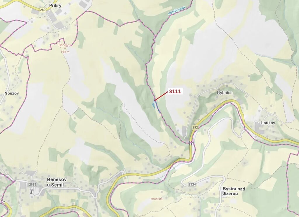 Lesní pozemek o výměře 2 958 m2, parcelní číslo 3111, podíl 1/1, katastrální území Benešov u Semil, obec Benešov u Semil, obec s rozšířenou působností Semily, okres Semily, Liberecký kraj.