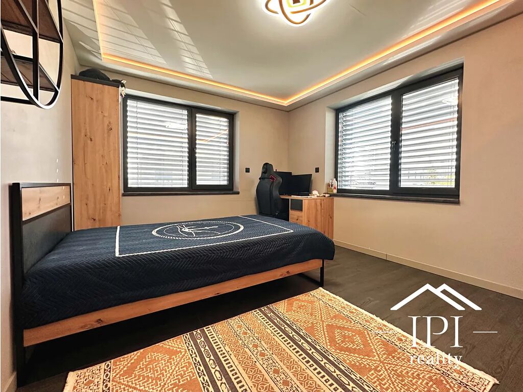 Dům se nachází v energetické třídě B, což zaručuje úsporný provoz, vyvážené náklady na energie a komfortní bydlení s ohledem na životní prostředí. Na střeše je již příprava pro instalaci solárních panelů, což umožňuje další snížení provozních nákladů v budoucnu. V celém domě je podlahové vytápění rozdělené do dvou samostatně řízených sekcí, vytápění zajišťuje elektrický kotel a ohřev vody elektrický bojler. V garáži je zavedeno 400V připojení – připravené pro nabíjení elektromobilů. Všechna okna jsou vybavena trojskly, která zajišťují skvělou tepelnou i zvukovou izolaci. Dům je rovněž vybaven moderním zabezpečovacím systémem s kamerovým dohledem, který zajišťuje maximální bezpečí a klid. Celkově jde o moderní, úsporný a technicky nadstandardně vybavený dům, který nabízí komfortní a ekologicky šetrné bydlení s důrazem na kvalitu a dlouhodobou úsporu provozních nákladů.