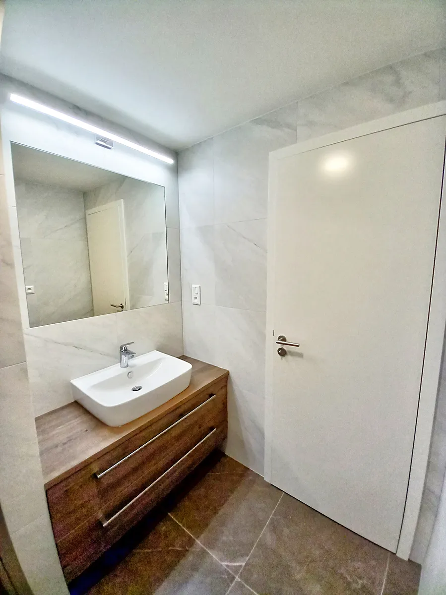K bytu náleží také prostorný sklep (7 m2), který je suchý a přístupný výtahem. Byt je vybaven vstupní předsíní s prostornou vestavěnou skříní, v rámci které je umístěna i pračka se sušičkou. Dále obývacím pokojem s moderním kuchyňským koutem (myčka, lednice, indukční varná deska, kombinovaná elektrická a mikrovlnná trouba). Ložnice je se samostatným vstupem z předsíně a koupelna se sprchovým koutem a WC. Byt má velká okna, díky čemuž je krásné prosvětlený a z bytu je velice hezký výhled. Podlahy jsou z kvalitního dubového dřeva.