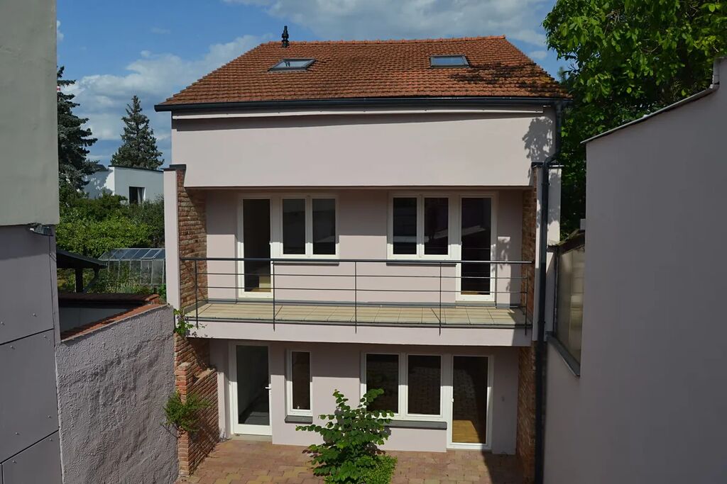 Prodej rod. domu po rekonstrukci s garáží a sklepem v Brně, Husovicích, rozhraní Černých Polí. Dům po rekonstrukci v technicky výborném stavu, s vnitřním atriem a velkou garáží, dispozičně 6 + 1 / v přízemí vstupní chodba a kotelna, kuchyně s obývacím prostorem, WC, šatna a technická místnost, vstup do sklepa, 1 NP dva pokoje s lodžiemi, WC, koupelna a šatna, 2 NP velký nedělený prostor a pracovna /. Dům je umístěný v klidu vnitřního atria, od ulice oddělený velkou garáží s terasou s výhledem na Černá Pole. Podlahová plocha domu cca 195 m2, vytápění novým kombinovaným plynovým kotlem Wiessmann s akumulační nádrží. V koupelně podlahové topení, jinde radiátory. Velká garáž umožňuje stání auta větíšch rozměrů, včetně obytného, případně dalšího auta v atriu domu. Terasa nad garáží zajímavě rozšiřuje možnosti využití a společně s vnitřním atriem tak plně nahrazuje zahradu. Pohodlné bydlení v širším centru Brna s výborným dopravním napojením bez dalších investic. Pro více informací a sjednání termínu prohlídky volejte makléře nabídky.