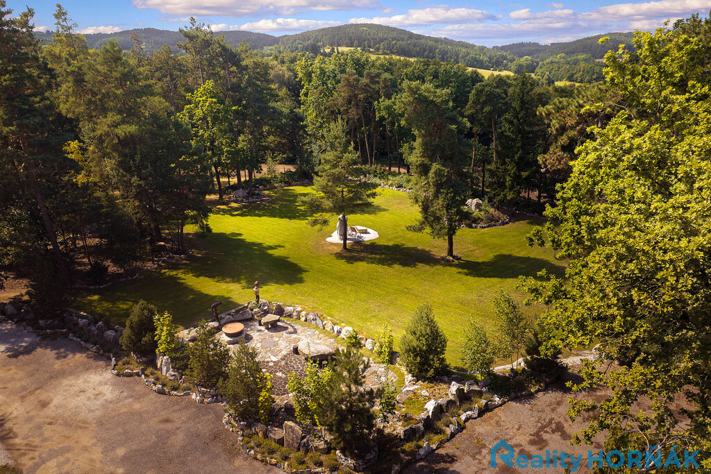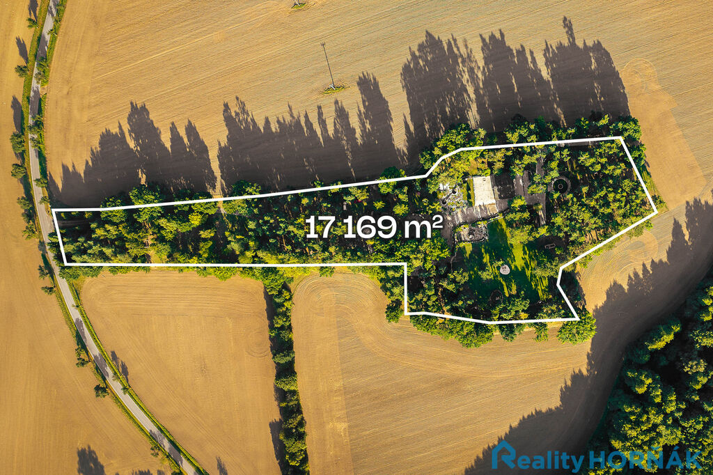 Soubor parcel o celkové výměře 17.169 m2 leží „na samotě“ mimo zastavěnou část obce a územním plánem je včleněn do kategorie F – plochy smíšené, obytné. Současný majitel pojal nabízené území jako výzvu k uměleckému pojednání. V naprostém souladu s přírodou zde vytvořil jedinečné místo, kde má každý kámen, každý strom, každý kousek dřeviny, či květeny své pečlivě vybrané místo. Unikátně zde vytvořil několik účelově odlišných zón, které však dohromady působí jako jedinečný, nezaměnitelný celek. Jen ten zbytek původní stavby jakoby sem nepatřil, jeho místo čeká na stavbu, která území dotvoří a novému majiteli poskytne netradiční, nadstandardní, úchvatné bydlení (na "první dobrou" přichází v úvahu například roubenka s velkými prosklenými plochami, ale třeba to nakonec bude úplně jinak :-)