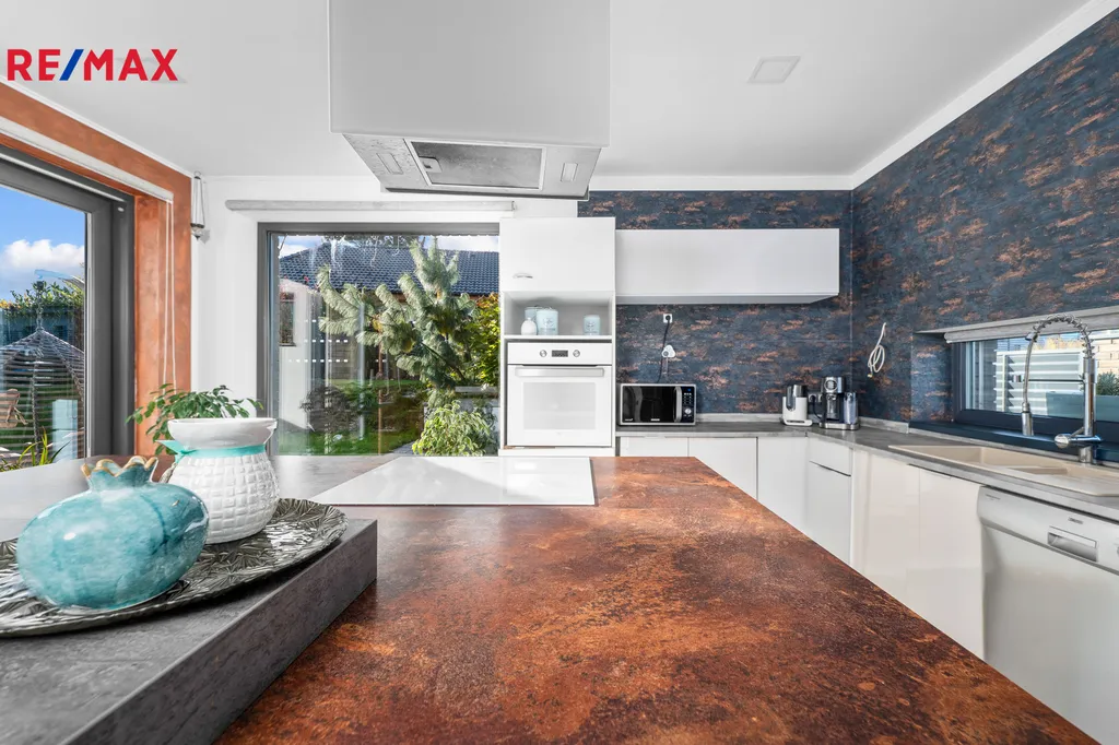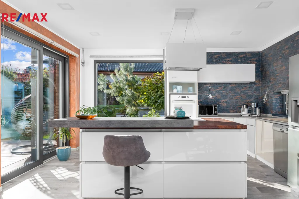 Pokud obdivujete přírodu, zamilujete si terasu v levém křídle domu, kde se nachází i bazén, kde můžete trávit veškeré letní dny se svoji rodinou. Zahrada nabízí dostatek prostoru, pro děti i domácí mazlíčky. Rodinný dům je kvalitně oplocen hliníkovým plotem. Zahrada je okrasná, kde najdete skalku, okrasné porosty, posezení a relaxační zóny. Terasy jsou zhotoveny z WPC WOODPLASTIC. Rodinný dům je připraven plnohodnotně na rozšíření podkroví o dalších 130m2 (již zvýšené pro jeho přípravu), střecha (pálená strešní taška). Kolaudace 2019.