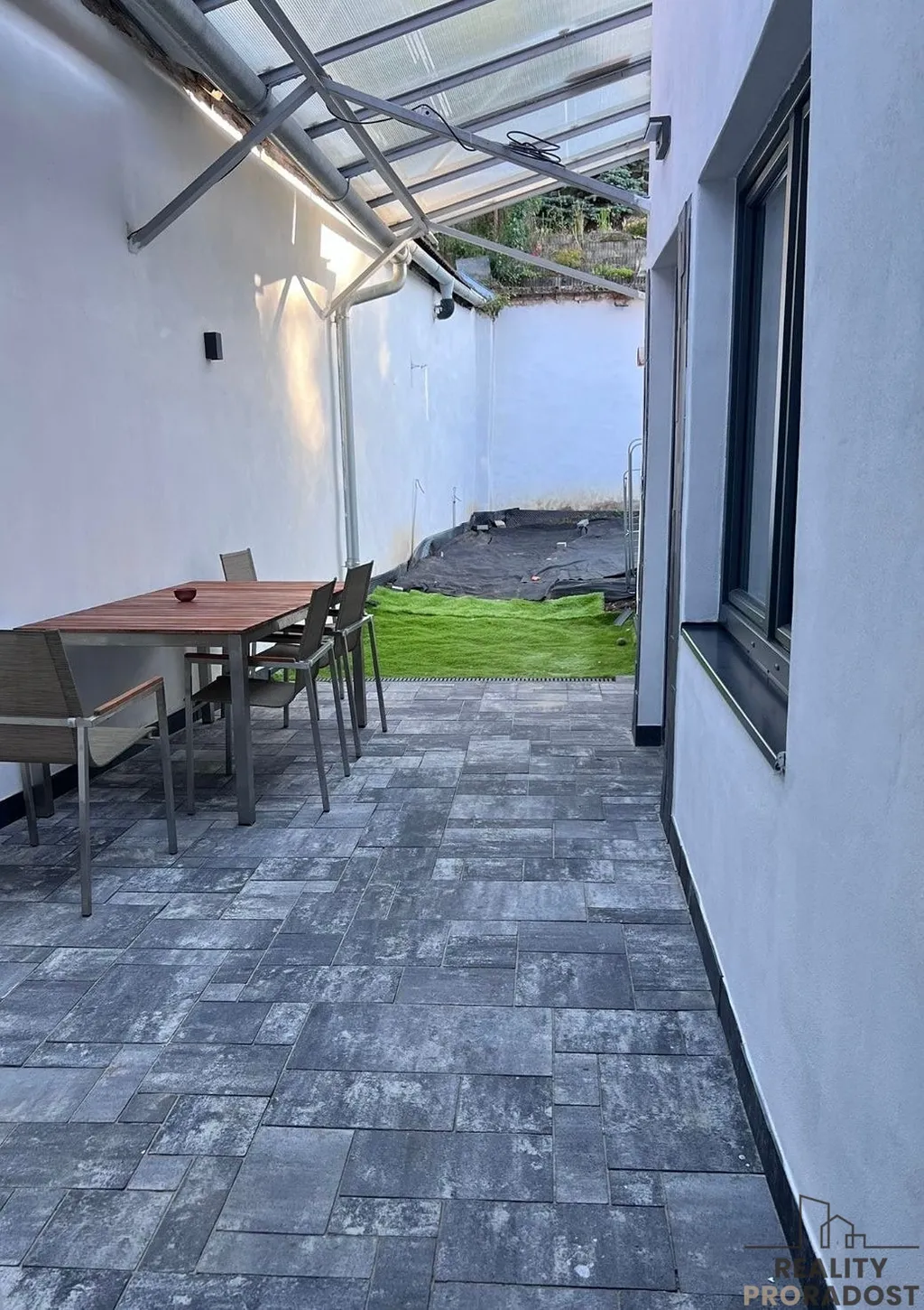 Dispozice bytu: vstupní chodba s průchodem do dvora domu, kuchyně s obývacím pokojem, ložnice, koupelna s umyvadlem, WC a prostorným sprchovým koutem, pračka se sušičkou.
