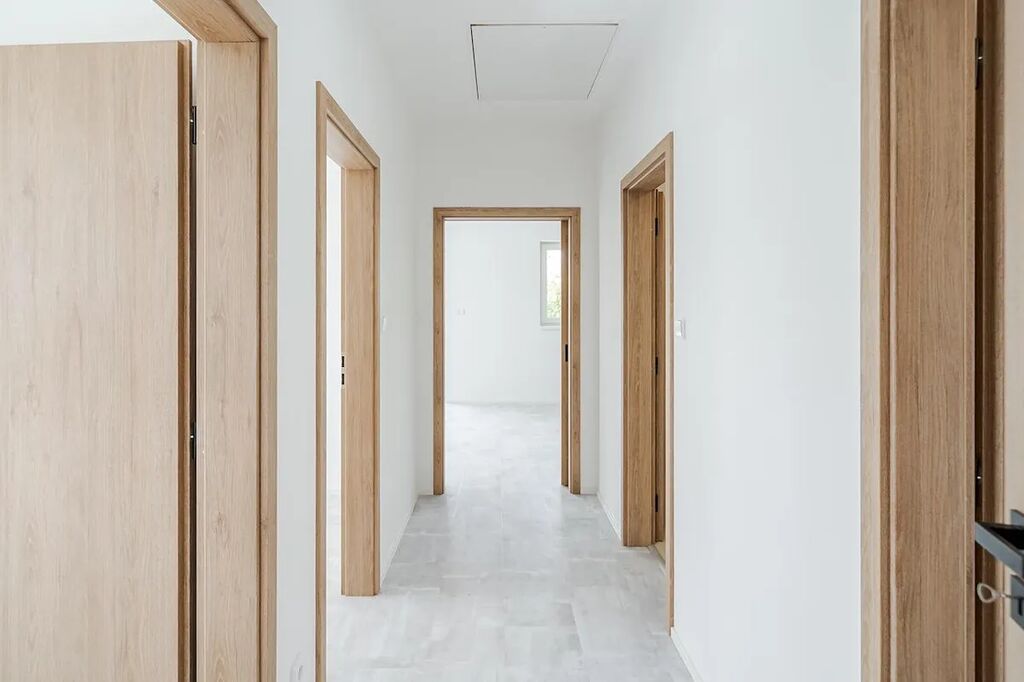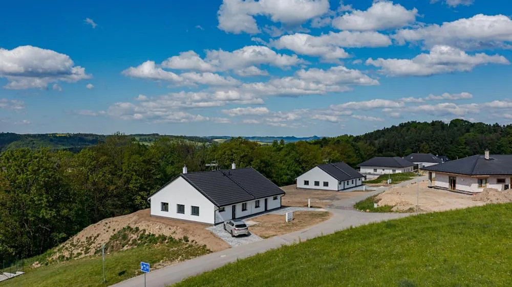 Exkluzivně nabízíme k prodeji kompletně dokončenou a vybavenou jednotku v rámci developerského projektu Domy Mistrovice. Jedná se o novostavbu s dispozicí 4+kk o podlahové ploše jedné jednotky cca 82 m². Součástí jednotky je terasa a vlastní zahrada. Projekt zahrnuje celkem čtyři jednotky ve dvou dvojdomech. Jednotka je kompletně dokončená a připravená k okamžitému nastěhování – noví majitelé si mohou přivézt nábytek a bydlet. Součástí standardu je hotová kuchyňská linka včetně vestavných spotřebičů, dokončené vinylové podlahy, podlahové vytápění, interiérové dveře, obklady, dlažba, sanita, kompletní elektroinstalace (zásuvky, vypínače, osvětlení), rozvody vytápění včetně plynového kotle a navíc i fotovoltaické panely na střeše, které výrazně přispívají k energetické efektivitě domu. Dispozičně je dům řešen velmi prakticky – po vstupu se ocitneme v zádveří, ze kterého se vstupuje do centrální chodby. Po pravé straně se nachází ložnice a koupelna s toaletou, po levé pak další dvě ložnice. Rovně se pokračuje do hlavní obytné části – prostorného obývacího pokoje s kuchyňským koutem a jídelnou. Odtud je vstup na terasu a do zahrady. Domy jsou napojené na elektřinu, vodovod, obecní kanalizaci a plyn. Každý dvojdům je umístěn na vlastní parcele – celková výměra parcel je 1344 m² a 1219 m². Každá jednotka tak získá ideální polovinu příslušného pozemku, tedy 672 m², respektive 610 m². Obec Mistrovice se nachází mezi městy Letohrad a Jablonné nad Orlicí – od Letohradu je vzdálena cca 5 km a od Jablonného 3 km. Blízkost Jablonného nad Orlicí poskytuje ideální možnosti pro milovníky turistiky a výletů – oblast Suchého vrchu a Bukové hory je vyhledávanou lokalitou v rámci Orlických hor. Dopravní dostupnost zajišťuje autobusové spojení navazující na vlakové linky a další regionální dopravu. V obci je k dispozici koupaliště, sportovní hřiště, stadion, knihovna i kostel. Více informací o projektu Vám rádi sdělíme telefonicky nebo osobně při prohlídce.