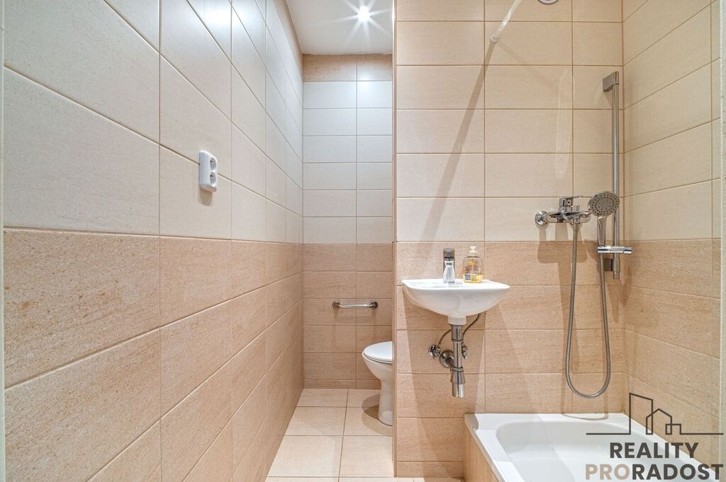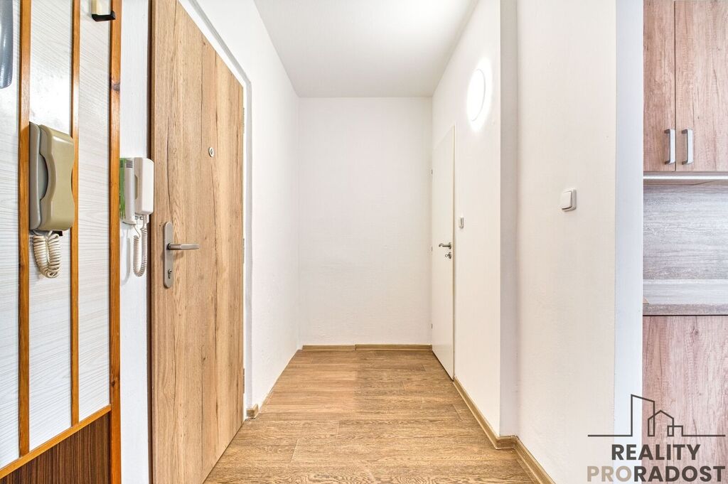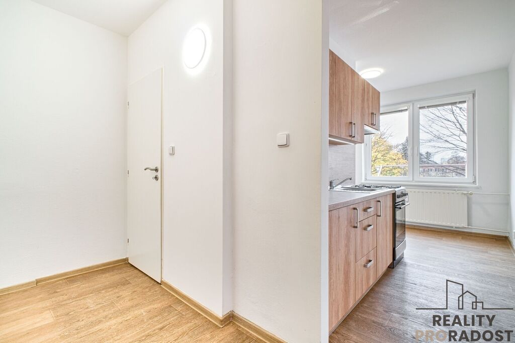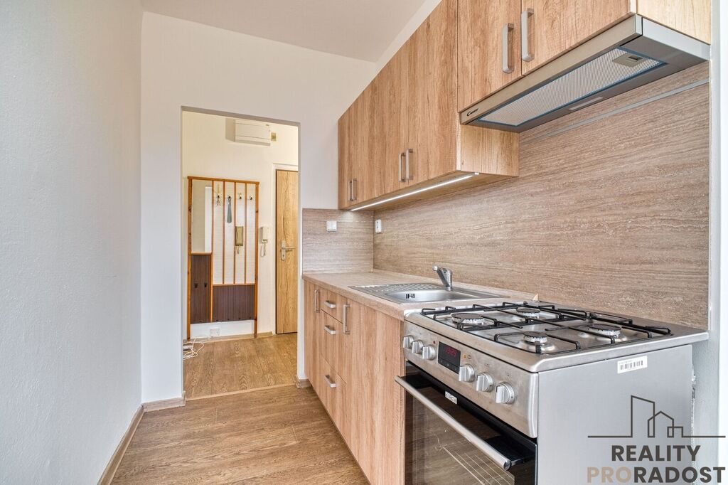 V kuchyni se nachází kuchyňská linka včetně plynového sporáku s elektrickou troubou, odsavač par, nerezový dřez s baterií. V kuchyni je dostatek místa pro umístění jidelního stolu. V koupelně je sprchový kout, umyvadlo, toaleta. V předsíni se nachází botníková sestava. Celý byt je čerstvě vymalován, v pokoji je položena nová podlaha.