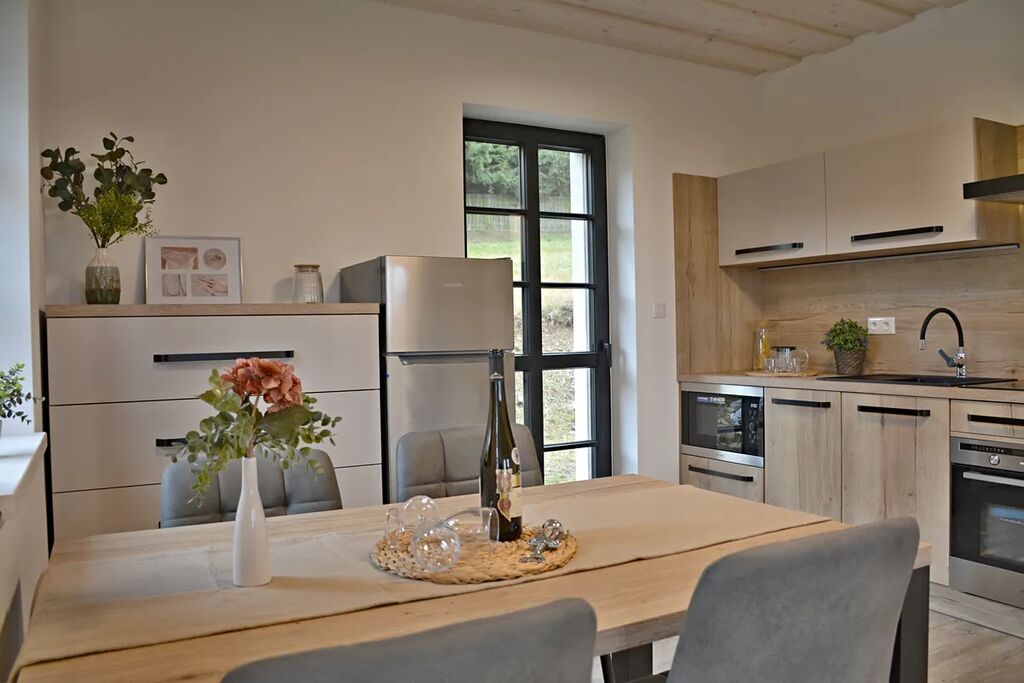 K odpočinku nebo grilování můžete využít společnou zahradu, která je za domem a je obklopena přírodou.