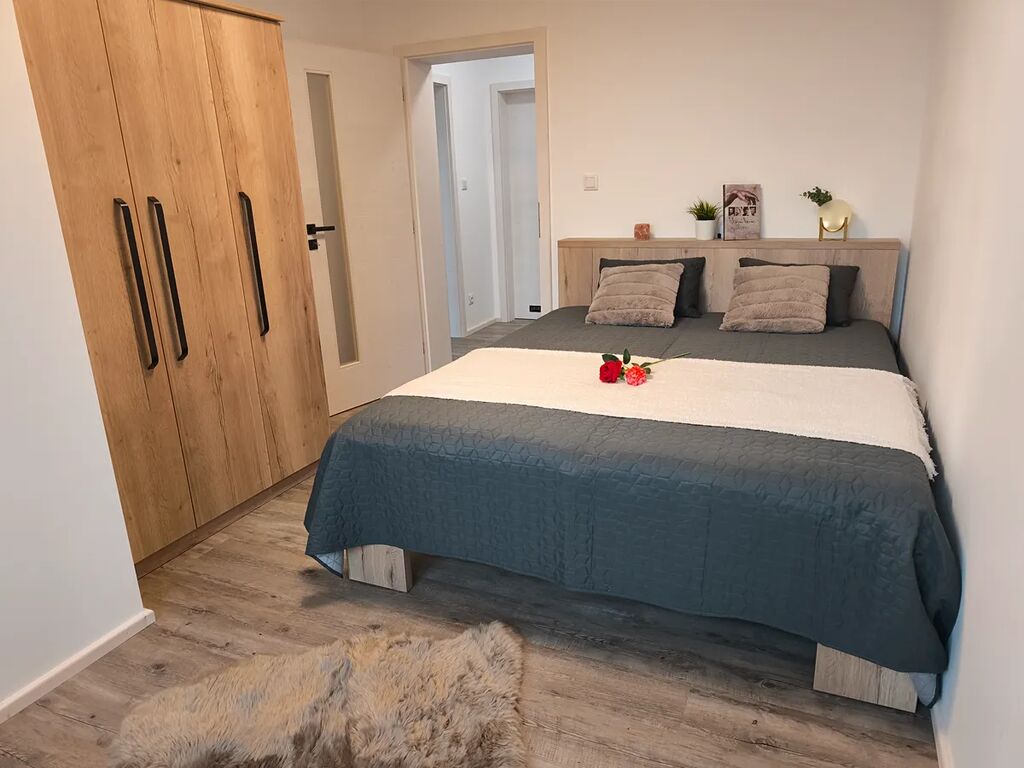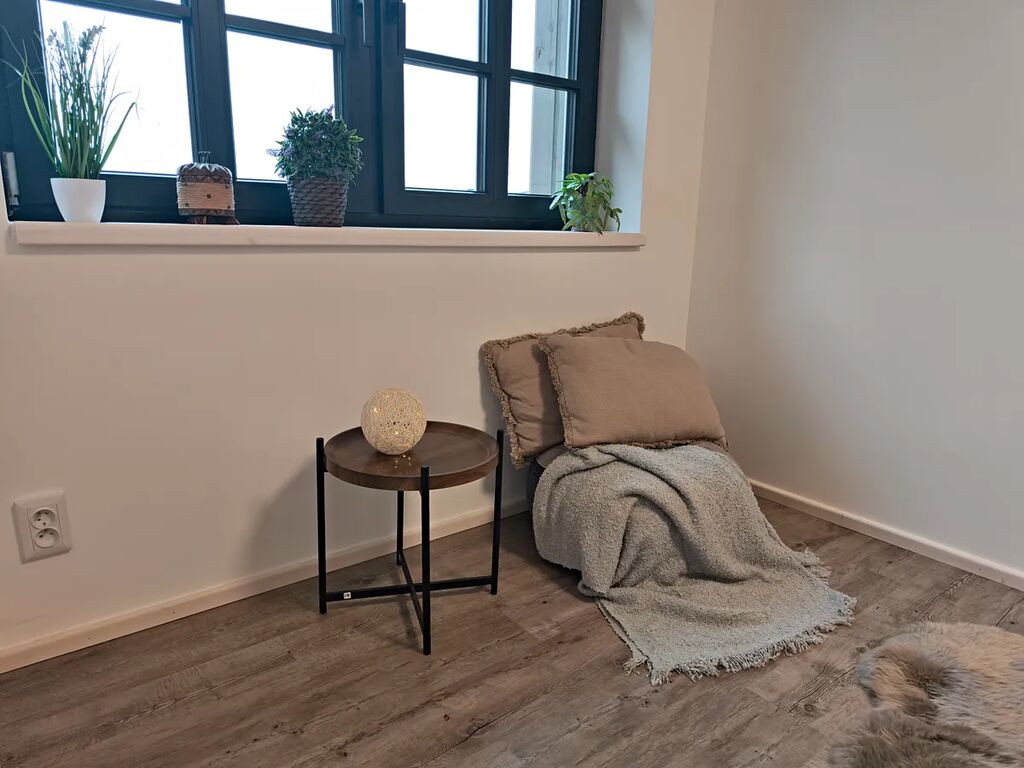 Byt tvoří útulná místnost ložnice a obývací částí s oddělenou kuchyní s jídelnou.
