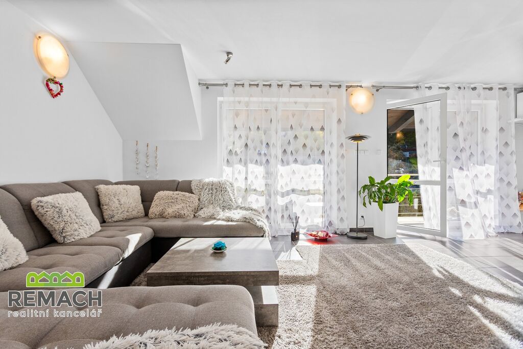 Dispozice bytu: obývací pokoj s vybaveným kuchyňským koutem, ložnice, koupelna s vanou a toaletou, vstupní chodba, obytné podkrovní prostory (dětský pokoj, odkládací prostor)