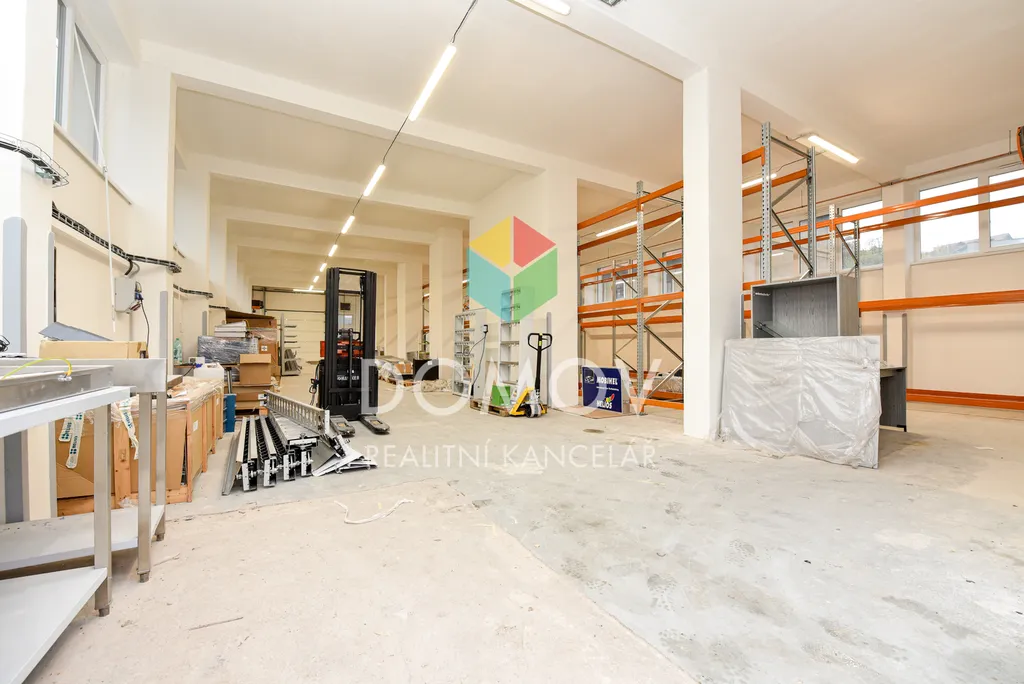 Součástí objektu je zázemí o výměře 60 m², kde se nachází dvě kanceláře, kuchyňka, sprcha a toaleta, což poskytuje veškerý komfort pro administrativní i provozní potřeby.