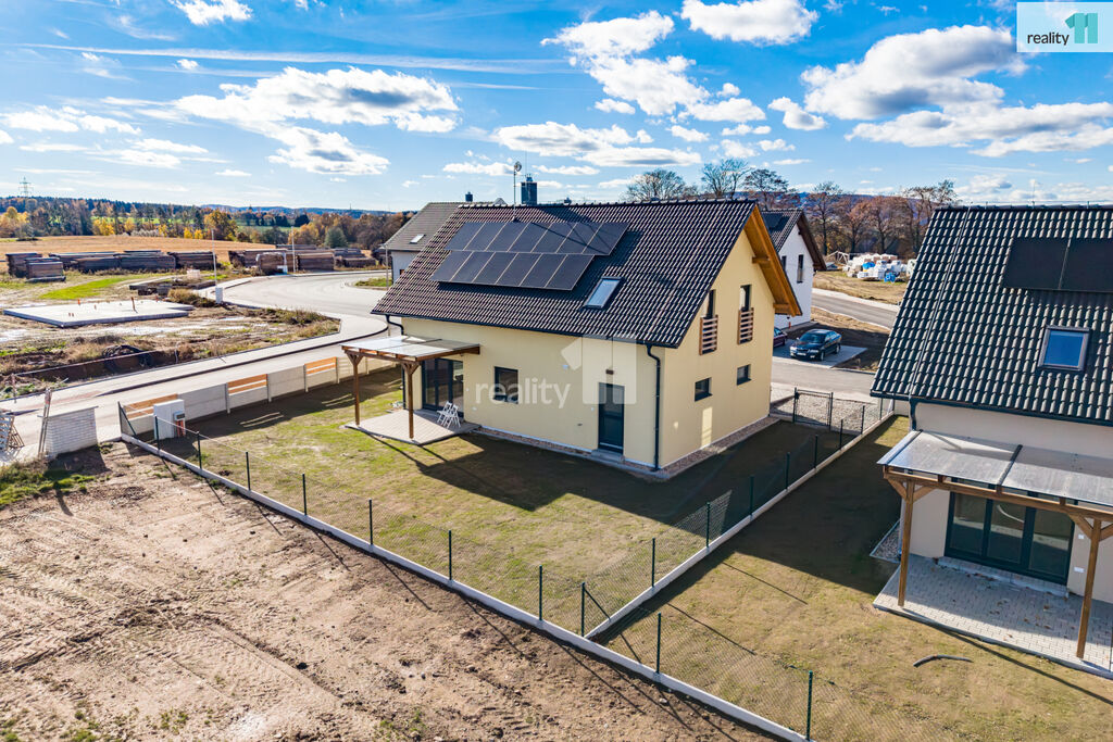 Tento samostatný dům s dispozicí 5+kk nabízí dostatek prostoru pro celou rodinu. Otevřený obývací prostor s kuchyní plynule přechází na terasu orientovanou na jih, kam po celý den proudí světlo. Každý dům je vybaven tepelným čerpadlem a fotovoltaickou elektrárnou, což zajišťuje nízké provozní náklady. Nechybí ani krbová kamna, která jistě oceníte během chladnějších dnů. Součástí je zahrada ideální pro rodinné chvíle i relax, nechybí ani možnost bezproblémového parkování v garáži, která je součástí domu.