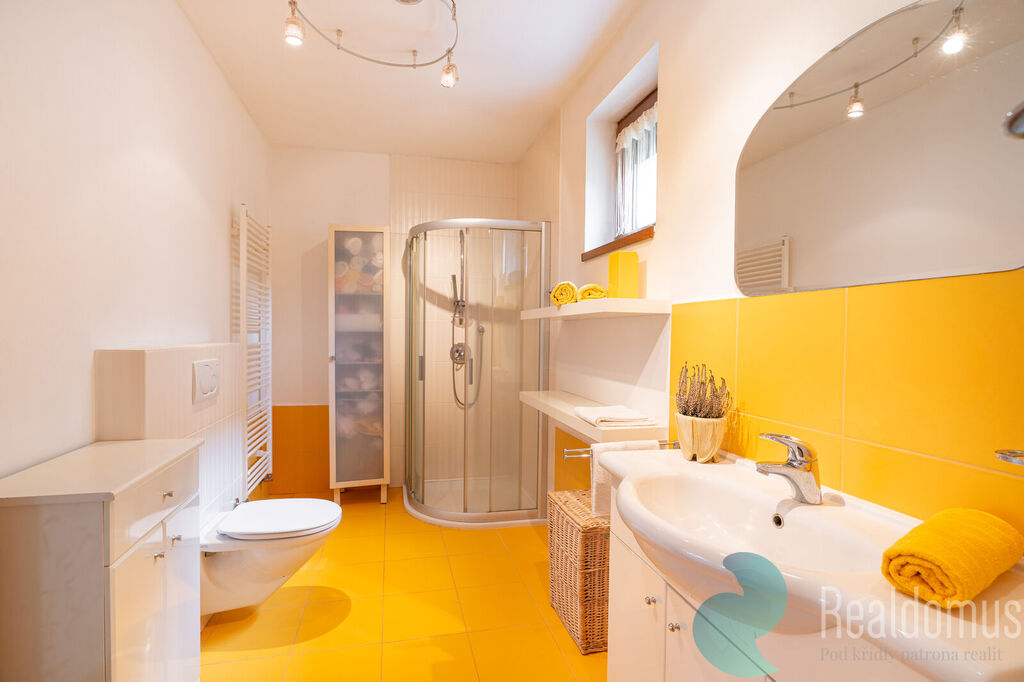 Dům je v současné chvíli rozdělen na 2 bytové jednotky. Hlavní bytová jednotka 3kk s velkorysou užitnou plochou 159 m2 se skládá z nádherné prosvětlené hlavní místnosti s kuchyňským koutem o rozloze 56 m2, dvou velkých ložnic (31 m2 a 27 m2), dvou koupelen (7 m2 a 6 m2) a technické místnosti. Druhá bytová jednotka 1kk má obytnou místnost s kuchyňským koutem (31 m2) a koupelnu 6 m2. Oba byty mají společnou chodbu a mohou být součástí jedné bytové jednotky, kdy jedna z ložnic bude mít vlastní  koupenu s toaletou.  Velký potenciál má toto dělení pro soužití více generací, či odrostlejší děti, které mohou mít v domě své samostatné zázemí.
