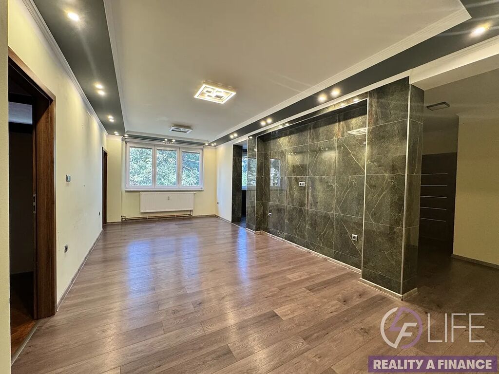 Před 3 lety prošel kompletní a  rekonstrukcí – promyšlená změna dispozice z 3+1 na 4+1 přidala praktický pokoj navíc, nové podhledy opticky zvětšily prostor a originální obklady v imitaci mramoru v kuchyni, koupelně i obývacím pokoji  dodávají interiéru osobitý a zajímavý vzhled.